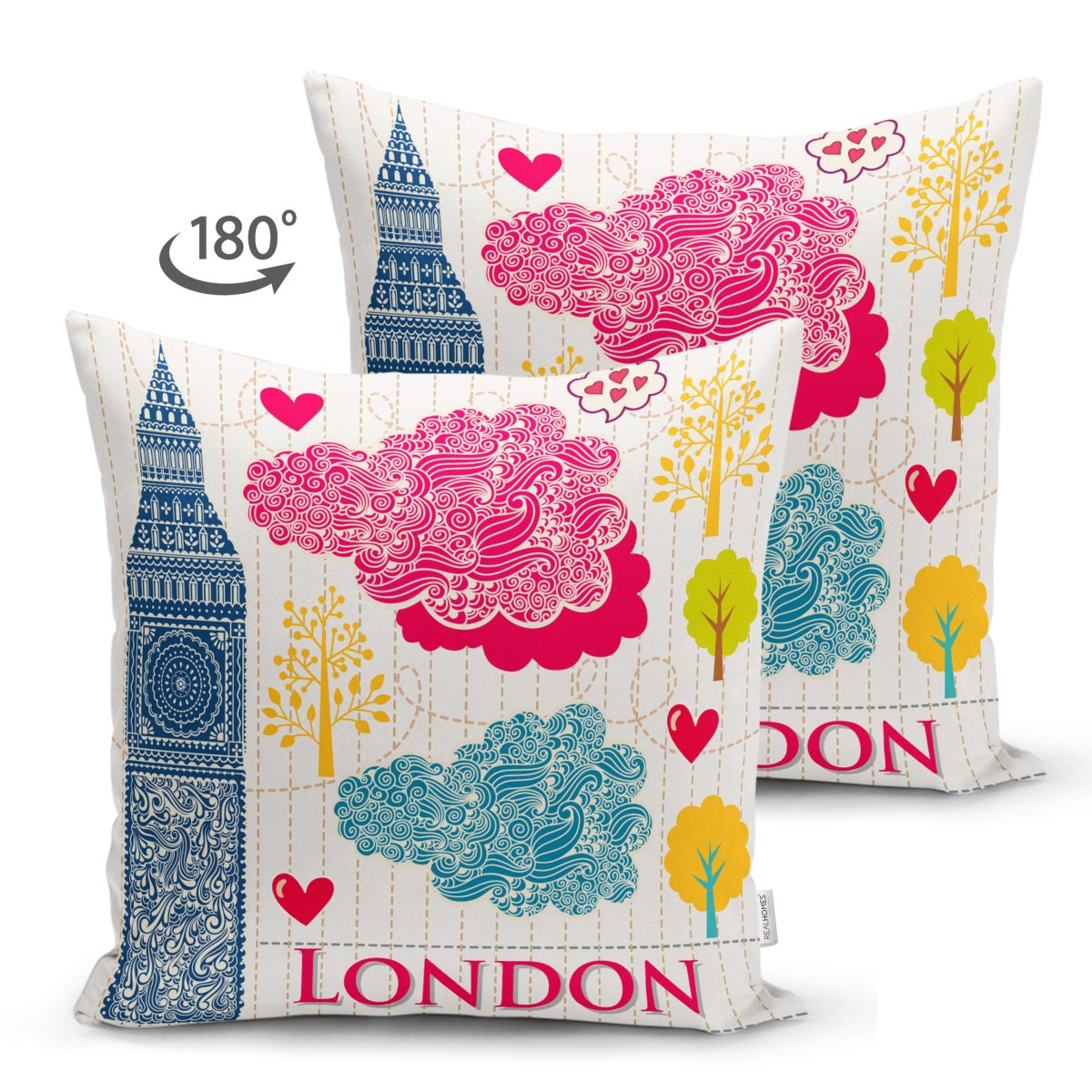 Çift Taraflı London Dijital Baskılı Dekoratif Süet Yastık Kırlent Kılıfı Realhomes