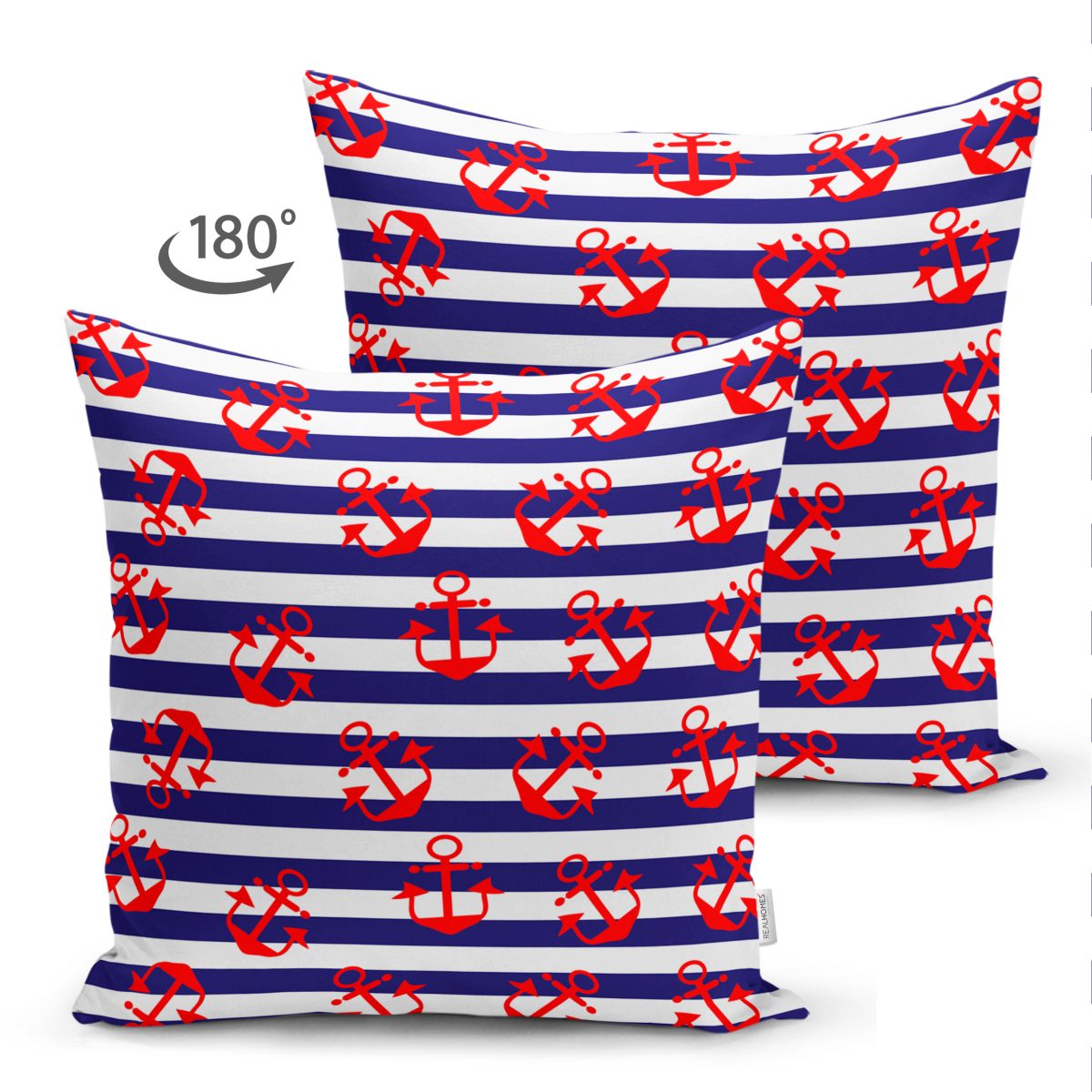 Çift Taraflı Mavi Çizgili Denizci Desenli Dijital Baskılı Modern Süet Yastık Kırlent Kılıfı Realhomes