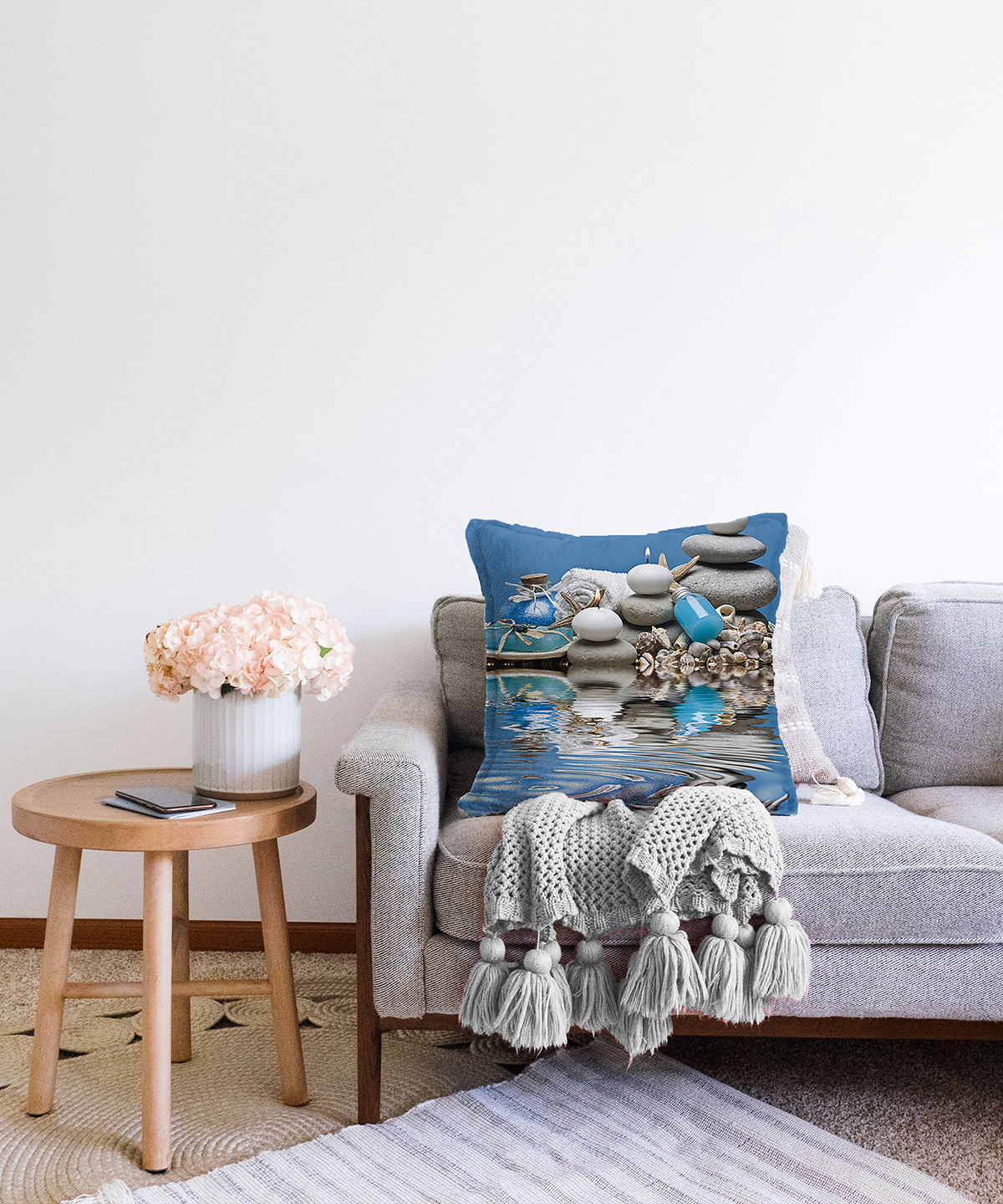 Mavi Dünya Dijital Baskılı Dekoratif Raşel Kadife Yastık Kırlent Kılıfı