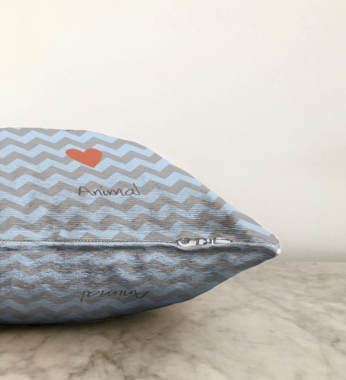 Mavi Gri Zigzaglı I Love Animal Desenli Çocuk Odası Raşel Kadife Yastık Kırlent Kılıfı