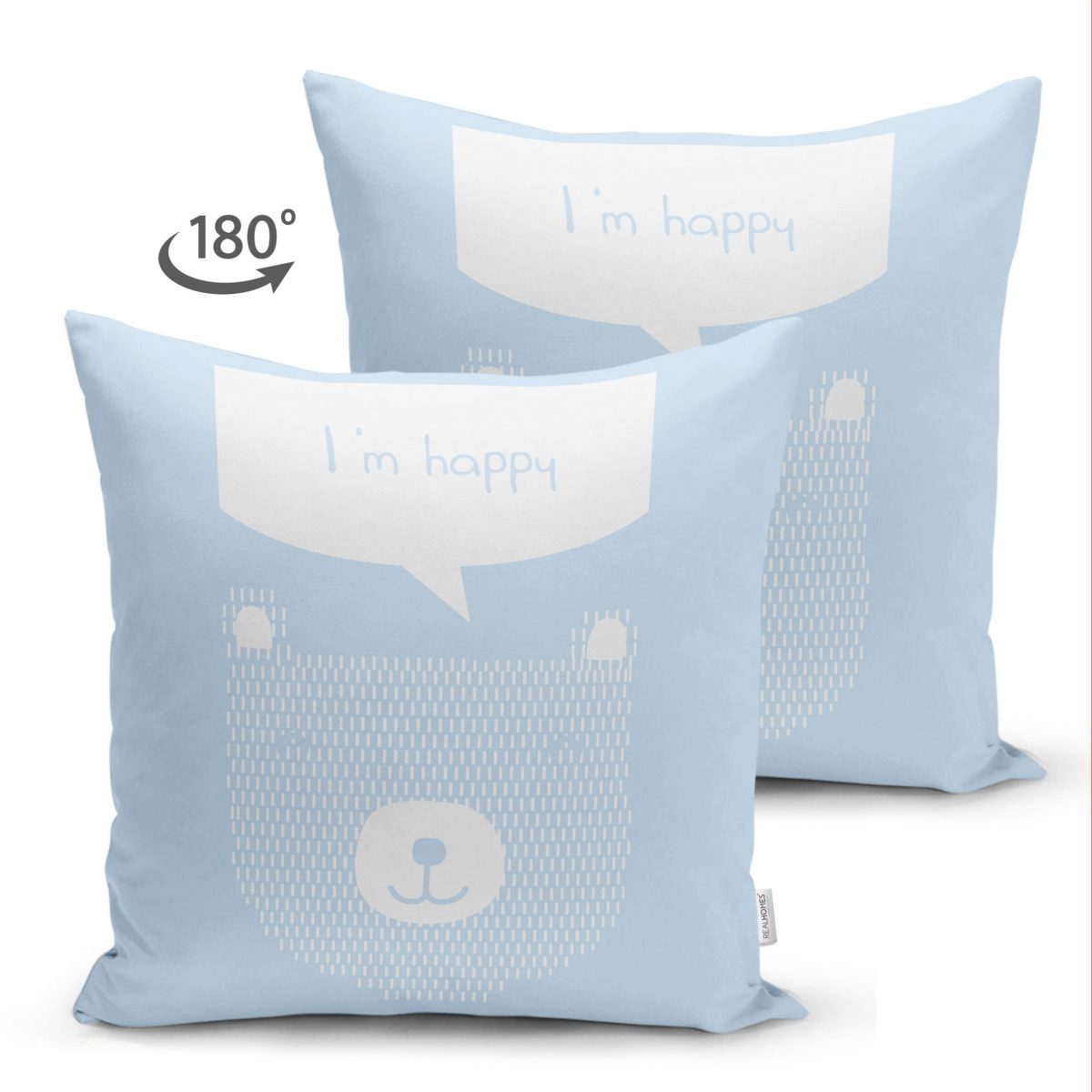 Çift Taraflı Mavi Zeminde Mutlu Ayıcık Desenli Bebek Odası Süet Yastık Kırlent Kılıfı Realhomes