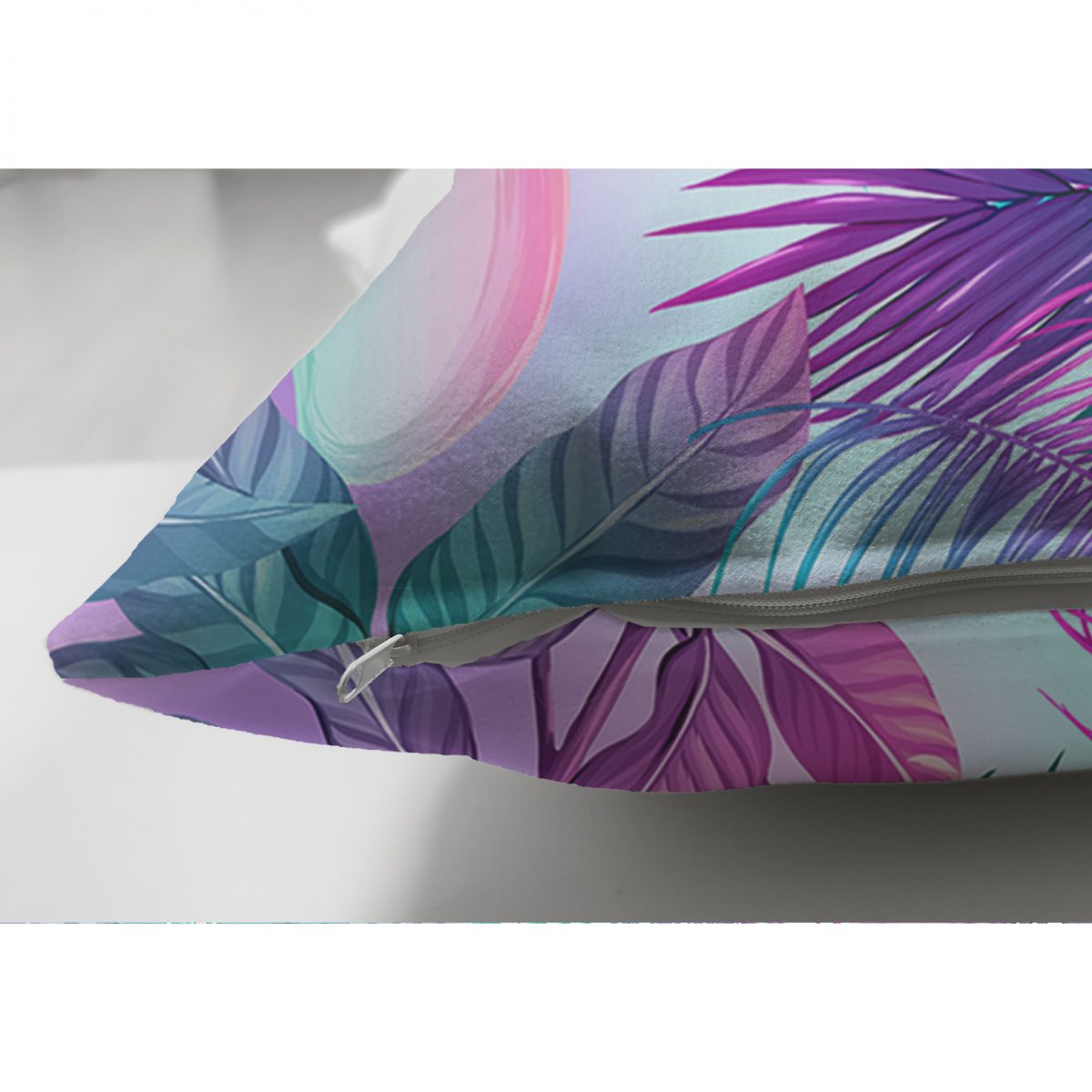 Çift Taraflı Mavi Zeminde Tropikal Objeler Modern Süet Yastık Kırlent Kılıfı