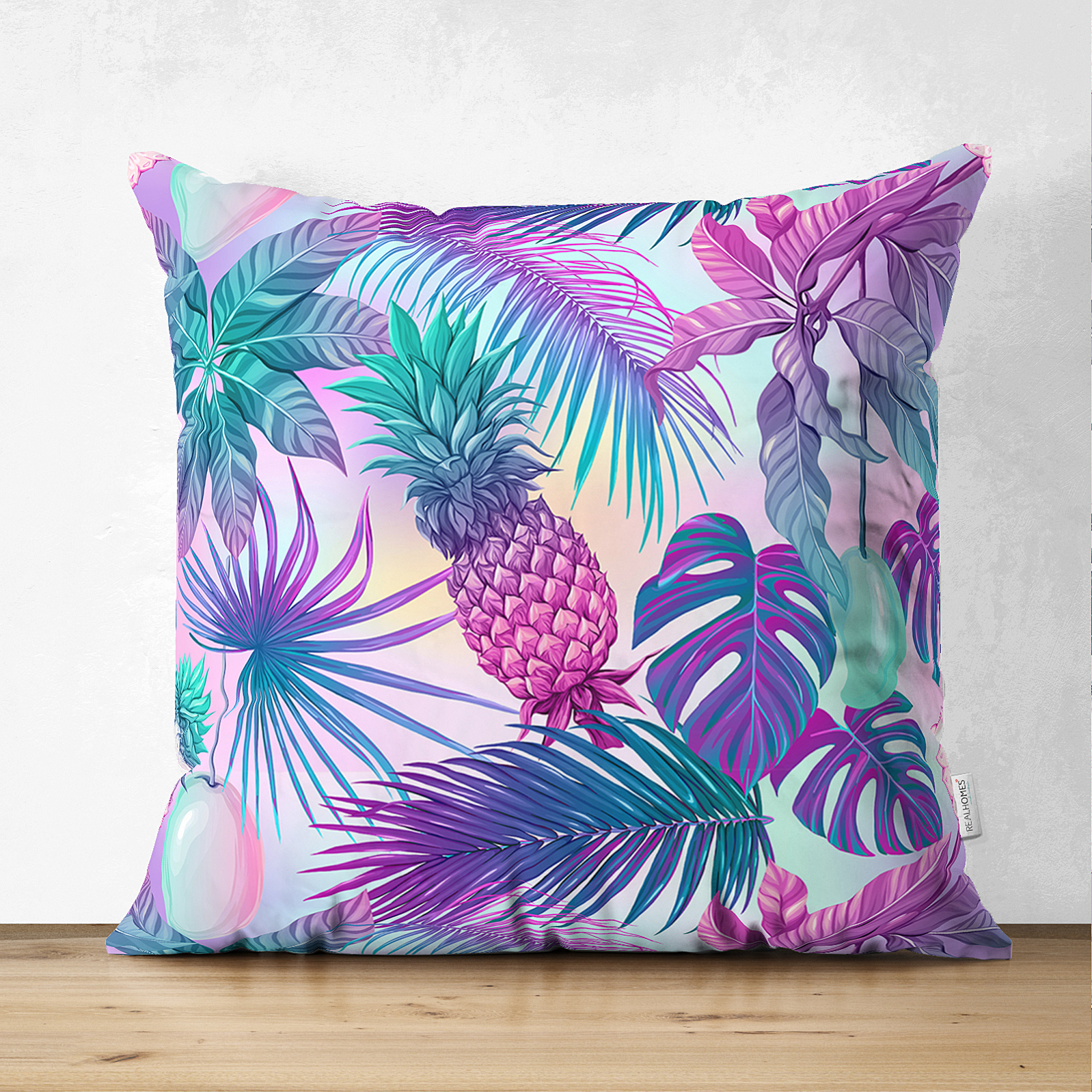 Çift Taraflı Mavi Zeminde Tropikal Objeler Modern Süet Yastık Kırlent Kılıfı Realhomes