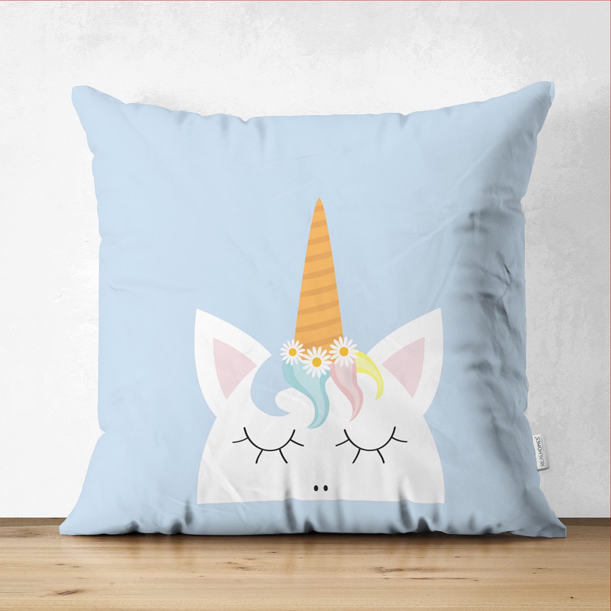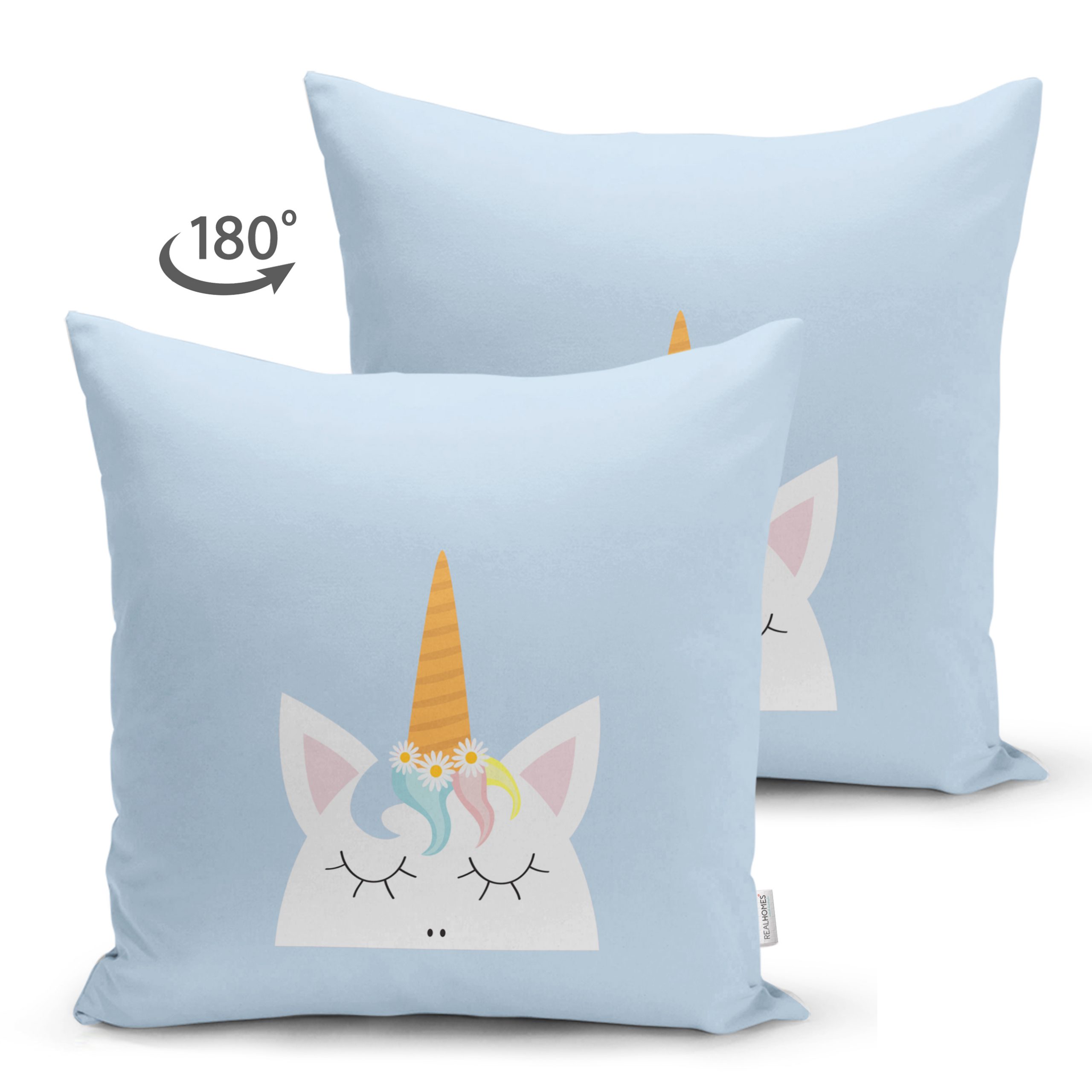 Çift Taraflı Mavi Zeminde Unicorn Desenli Çocuk Odası Süet Yastık Kırlent Kılıfı Realhomes