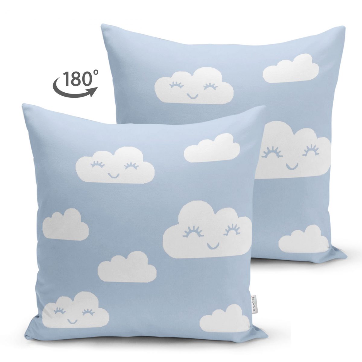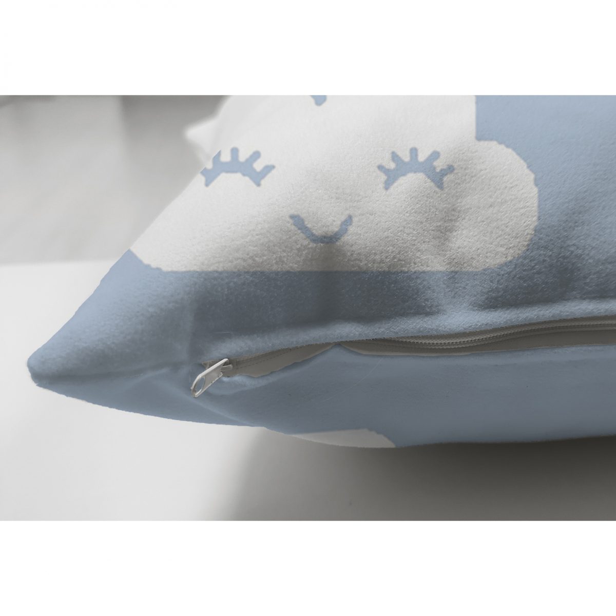 Çift Taraflı Mavi Zeminli Bulut Temalı Dijital Baskılı Modern Süet Yastık Kılıfı