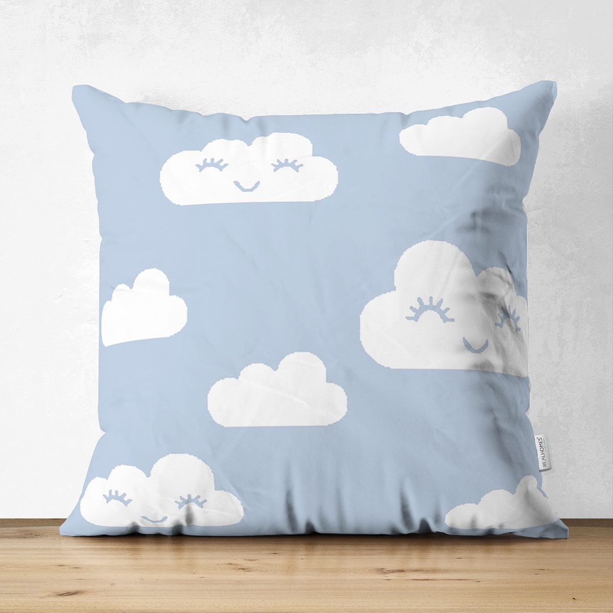 Çift Taraflı Mavi Zeminli Bulut Temalı Dijital Baskılı Modern Süet Yastık Kılıfı Realhomes
