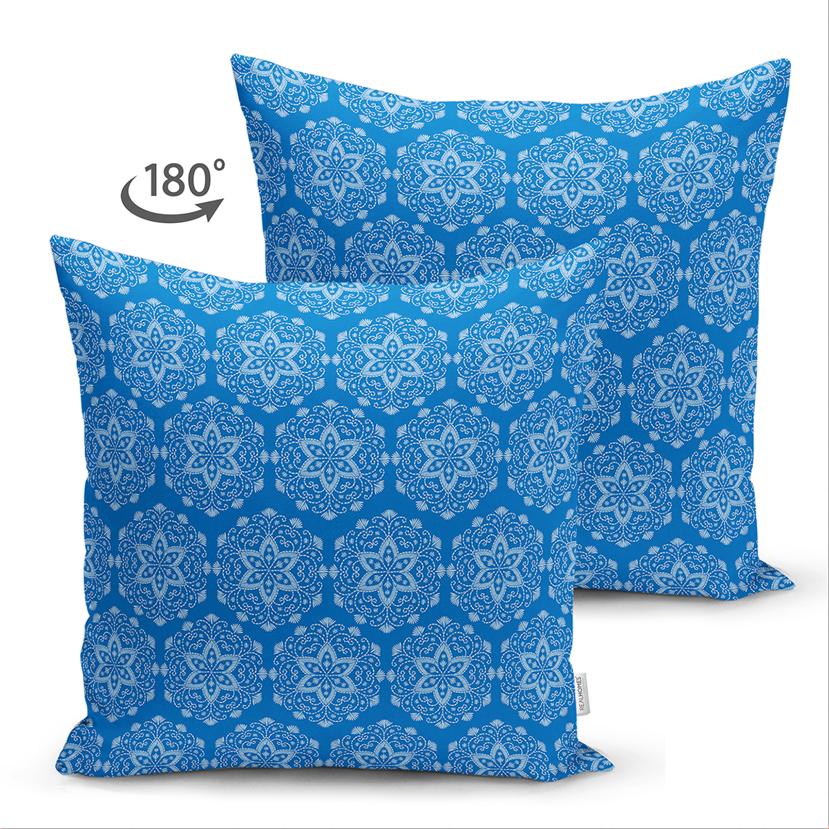 Çift Taraflı Mavi Zeminli Kartanesi Desenli Dijital Baskılı Modern Süet Yastık Kırlent Kılıfı