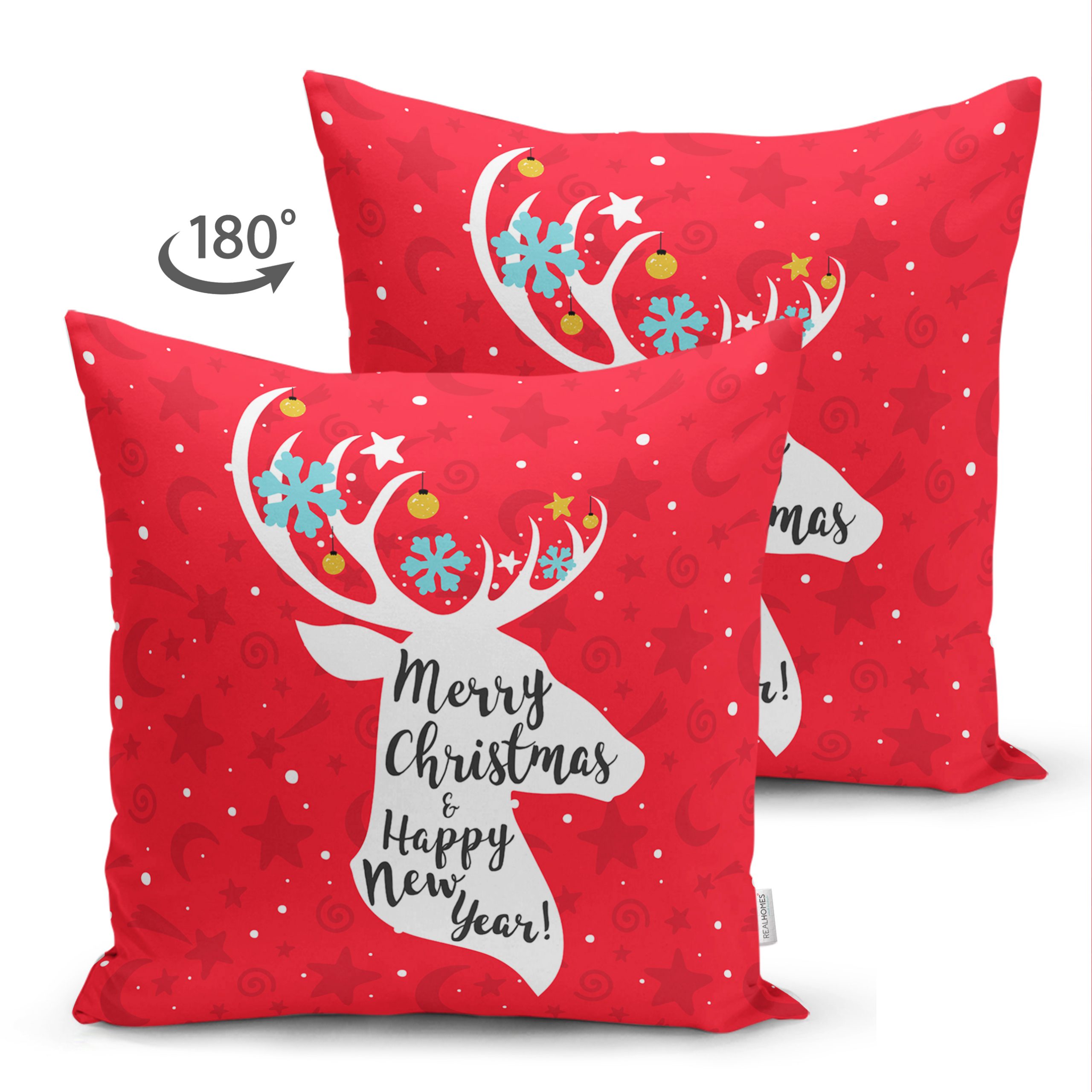 Çift Taraflı Merry Christmas Geyik Desenli Dekoratif Süet Yastık Kırlent Kılıfı