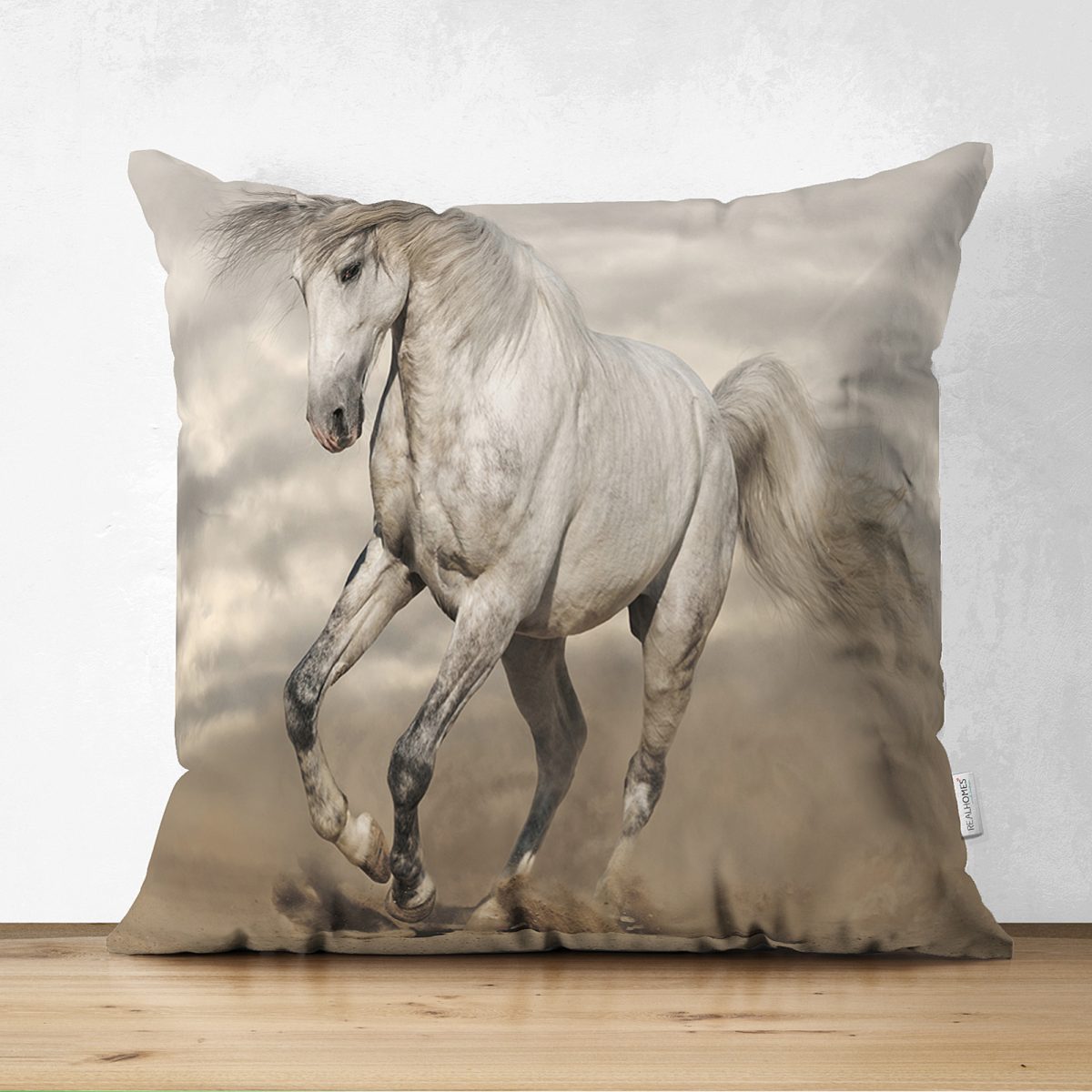 Çift Taraflı Modern At Desenli Dijital Baskılı Süet Yastık Kırlent Kılıfı
