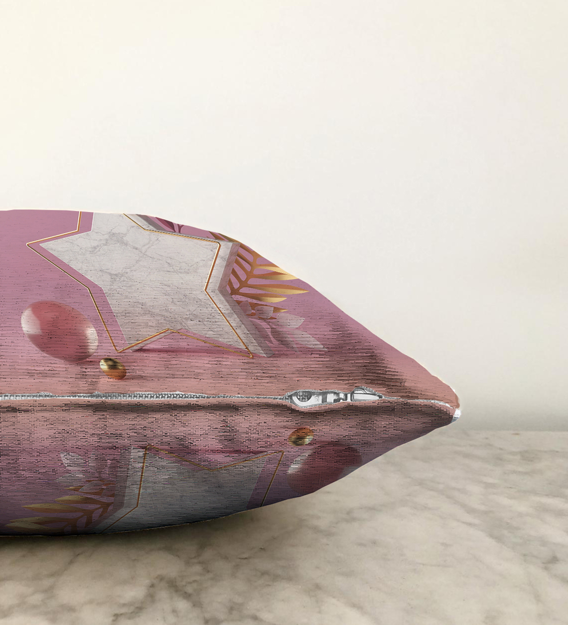 Modern Pembe Zeminli 3D Yıldız Desenli Dekoratif Raşel Kadife Yastık Kırlent Kılıfı