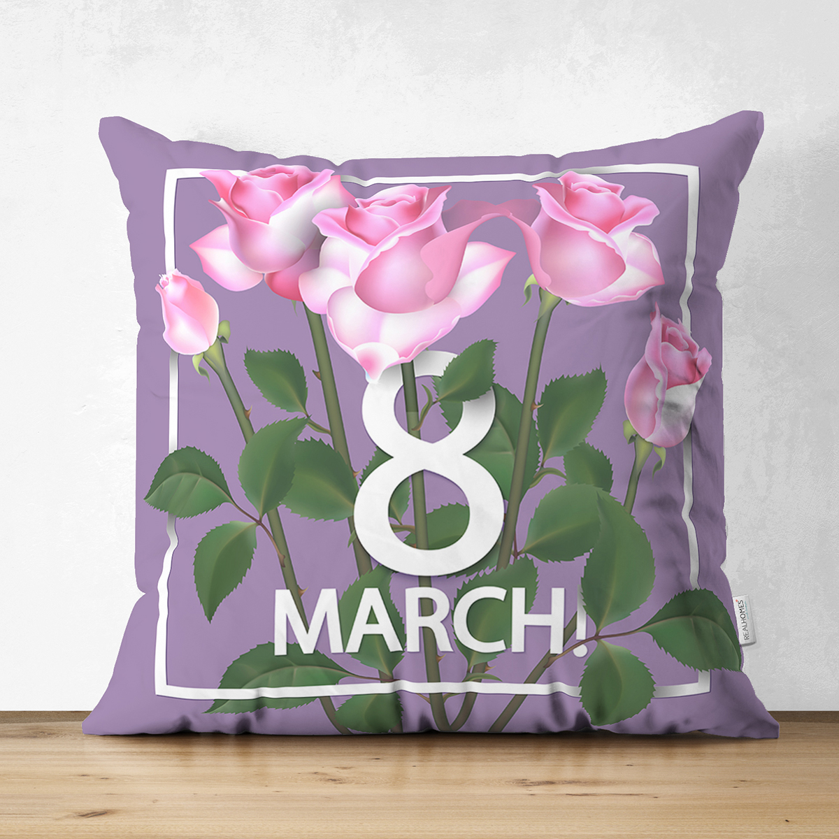 Çift Taraflı Özel Tasarım 8 March Gül Tasarımlı Dijital Baskılı Modern Süet Yastık Kırlent Kılıfı
