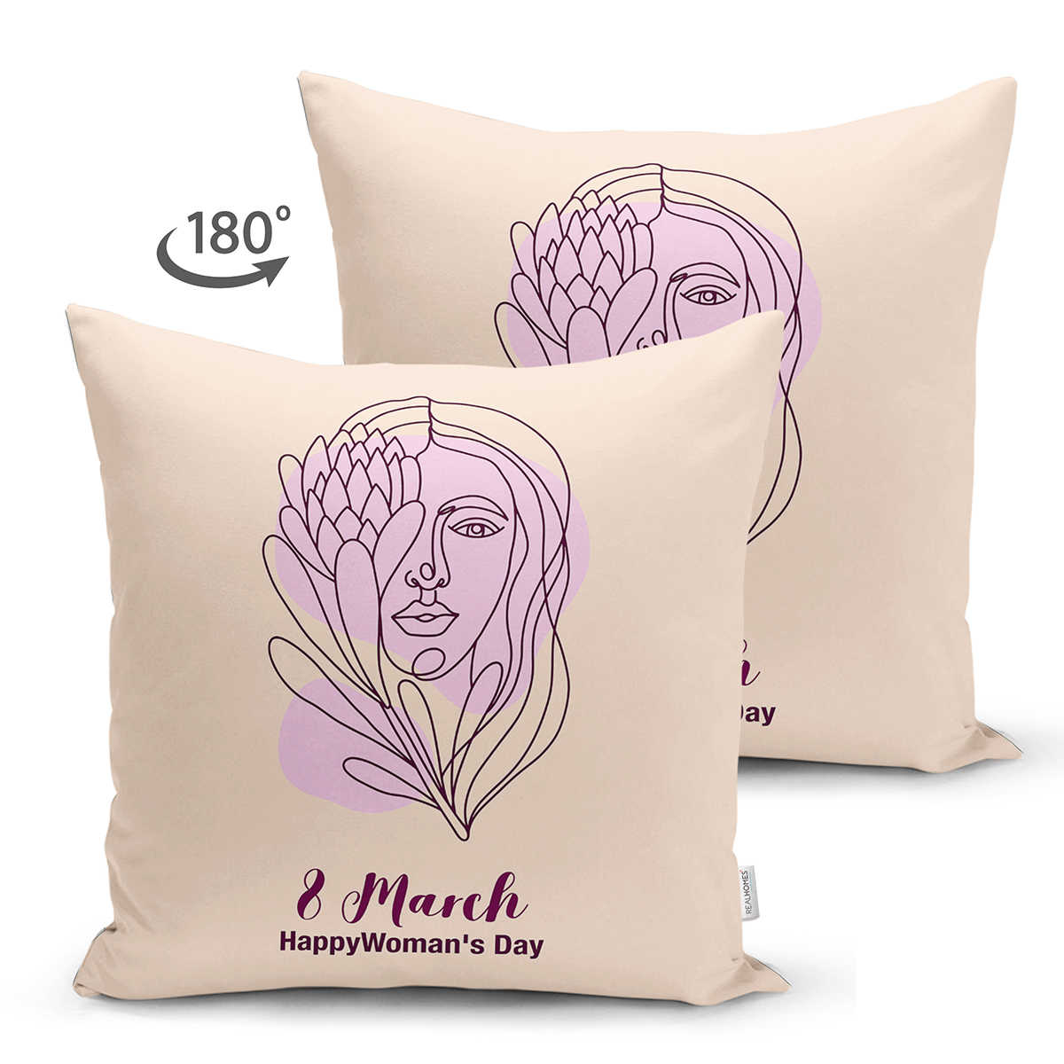 Çift Taraflı Özel Tasarım 8 March Kadın Silüetli Dijital Baskılı Modern Süet Yastık Kırlent Kılıfı
