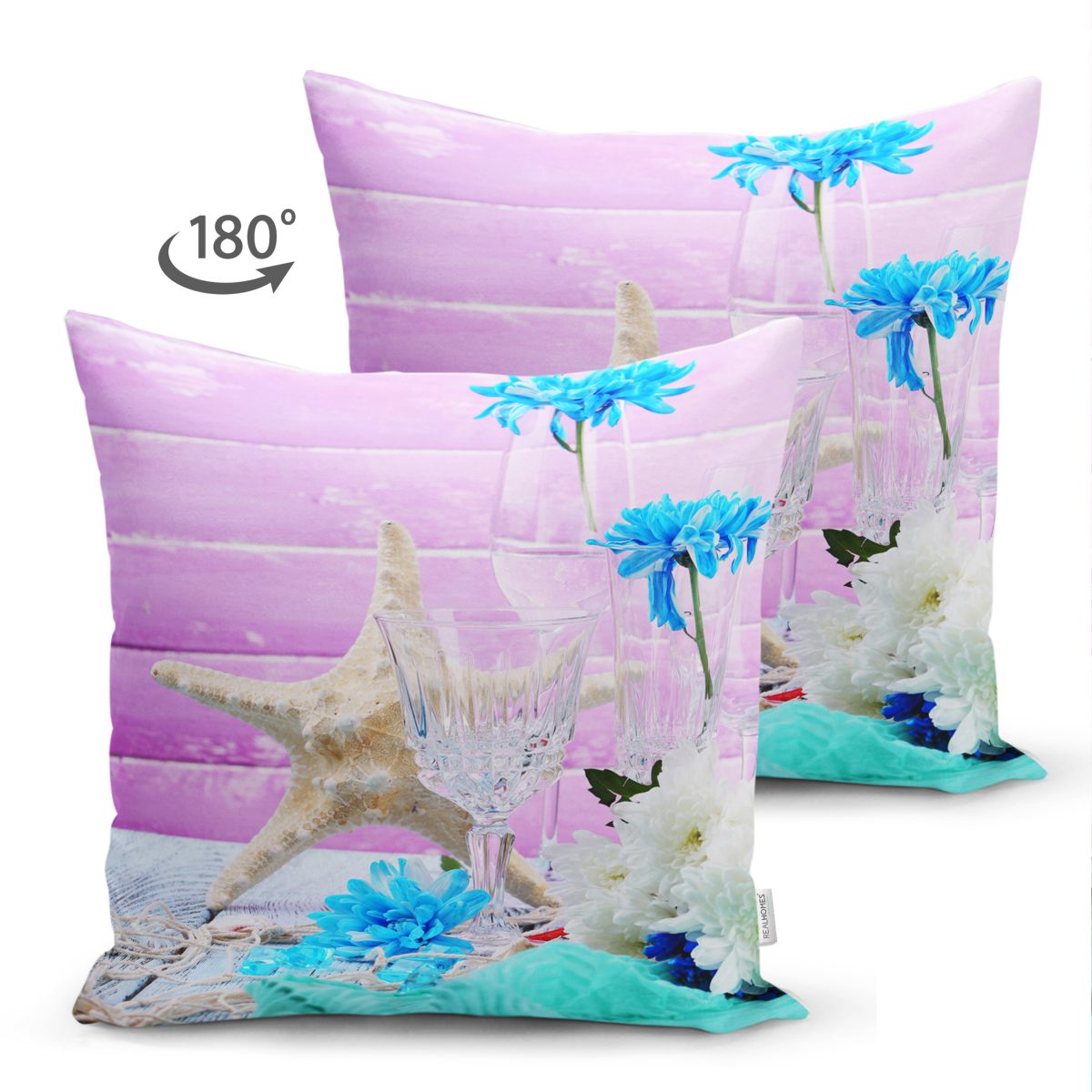 Çift Taraflı Özel Tasarım Deniz Yıldızı Motifli Dijital Baskılı Modern Süet Yastık Kırlent Kılıfı Realhomes