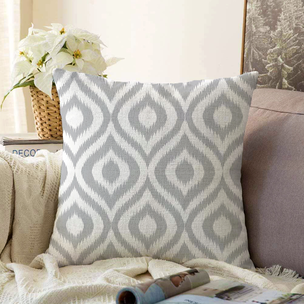 Özel Tasarım Gri İkat Desenli Dijital Baskılı Raşel Kadife Yastık Kırlent Kılıfı