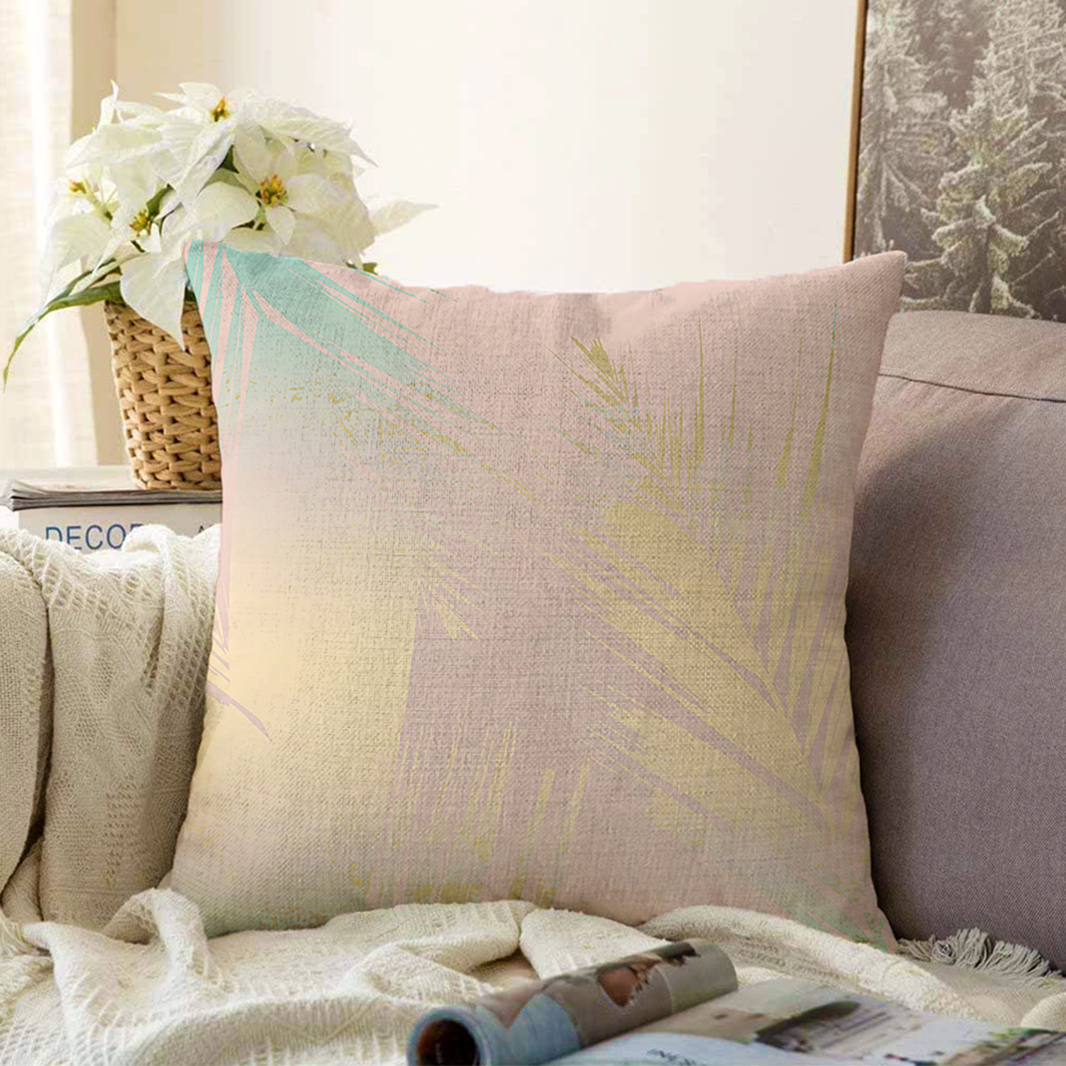 Pastel Zemin Üzerinde Gold Detaylı Yaprak Desenli Modern Raşel Kadife Yastık Kırlent Kılıfı