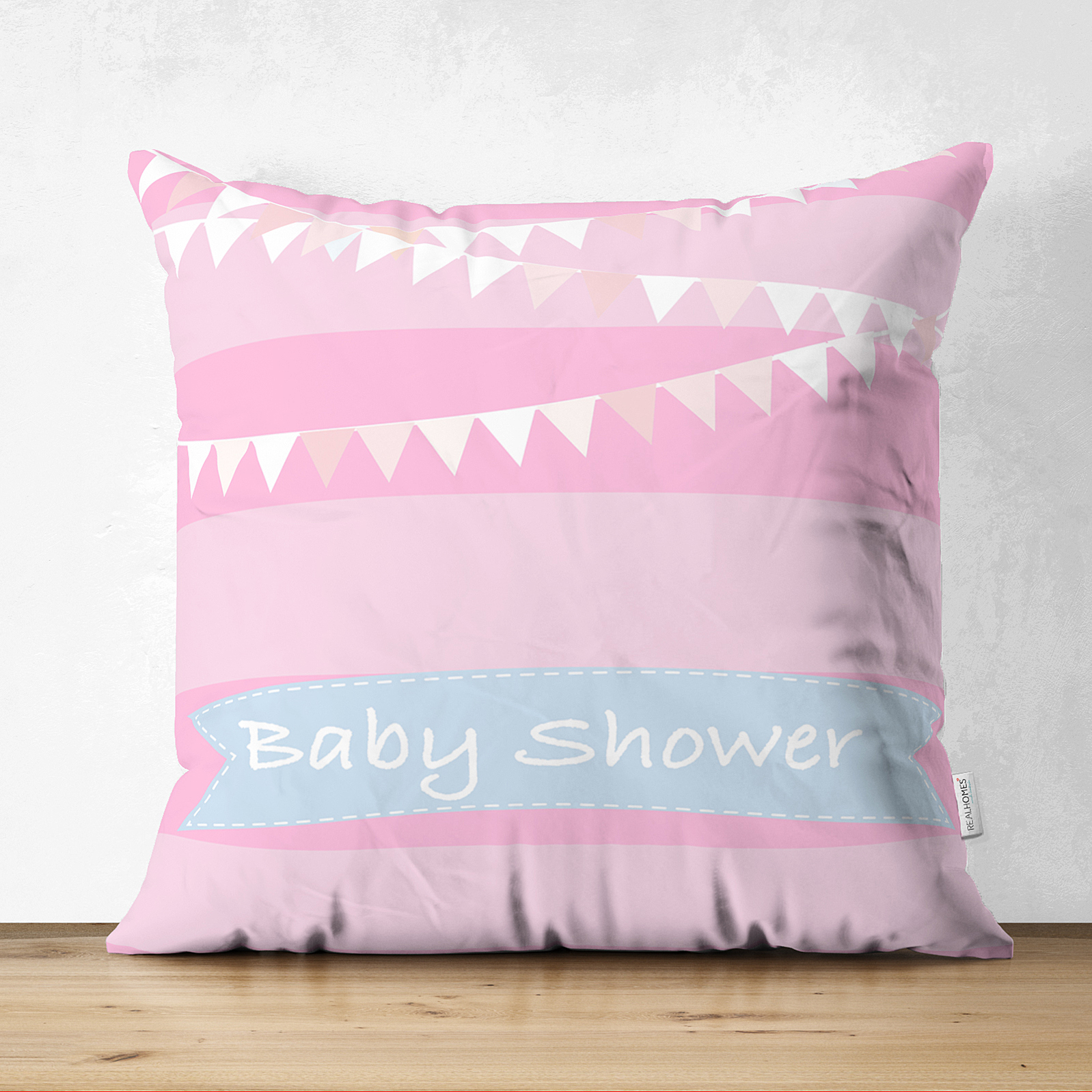 Çift Taraflı Pembe Çizgili Baby Shower Çocuk Odası Süet Yastık Kırlent Kılıfı Realhomes