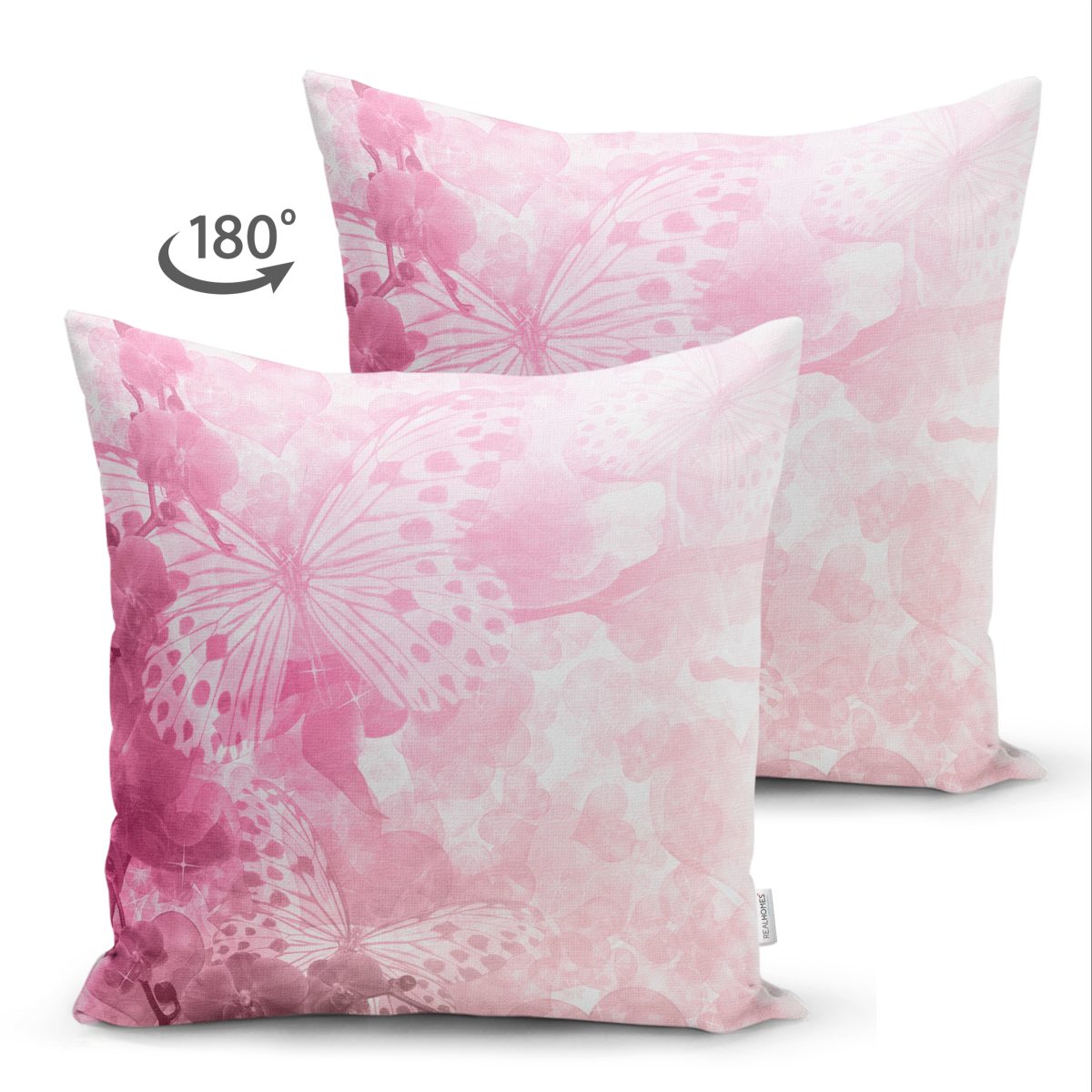 Çift Taraflı Pembe Kalp Ve Kelebek Temalı Dijital Baskılı Dekoratif Süet Yastık Kırlent Kılıfı Realhomes