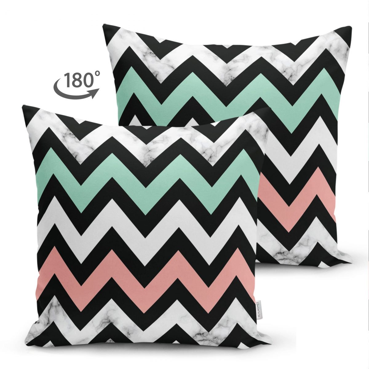 Çift Taraflı Pembe Mavi Geometrik Mermer Zeminli Dijital Baskılı Süet Yastık Kırlent Kılıfı Realhomes