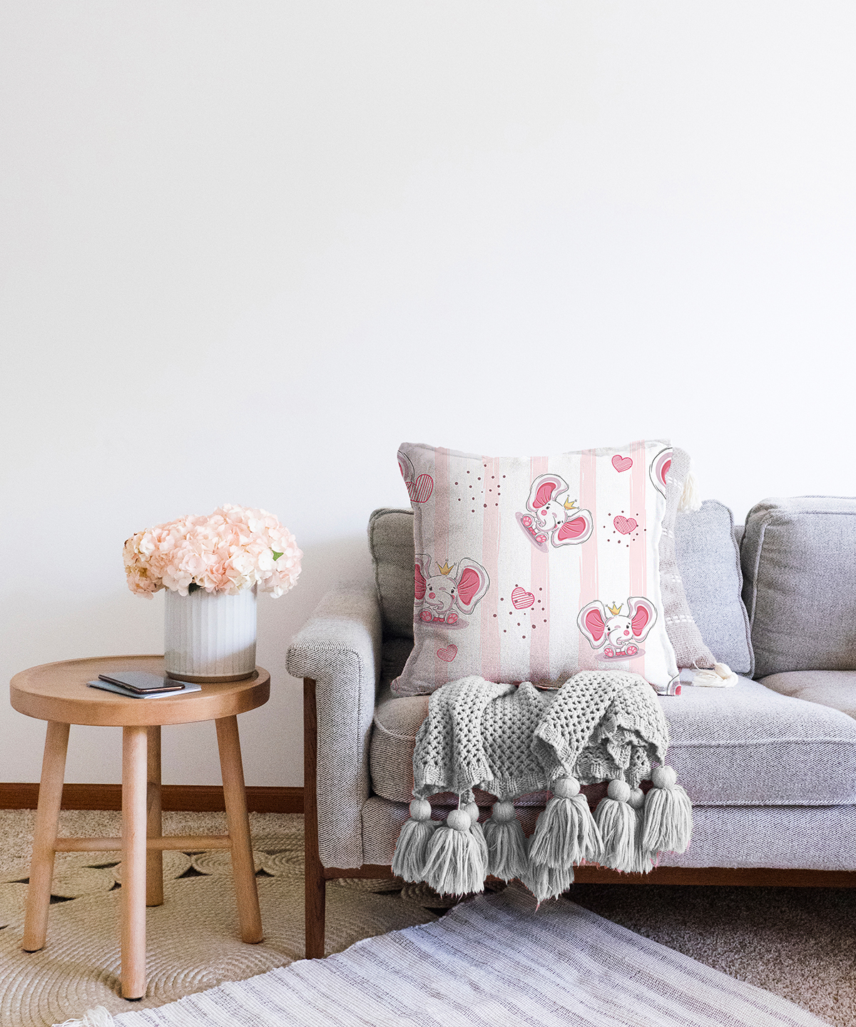 Pembe Sevimli Fil Temalı Çocuk Odası Raşel Kadife Yastık Kırlent Kılıfı