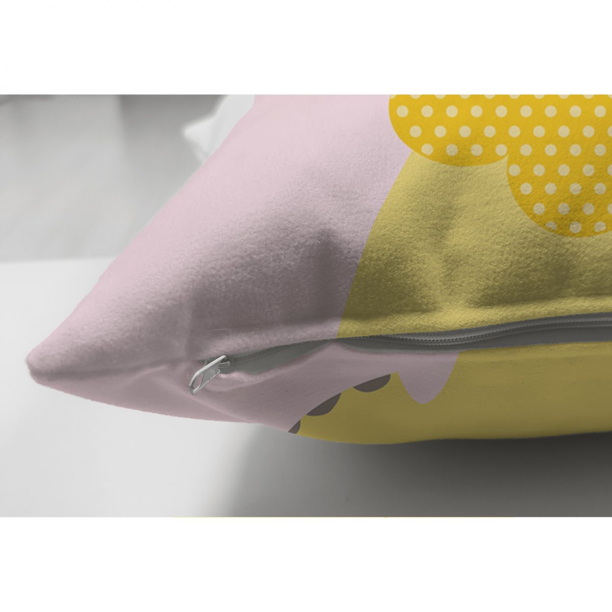 Çift Taraflı Pembe Zeminde Uçan Balonlar ve Fil Desenli Çocuk Odası Süet Yastık Kırlent Kılıfı Realhomes