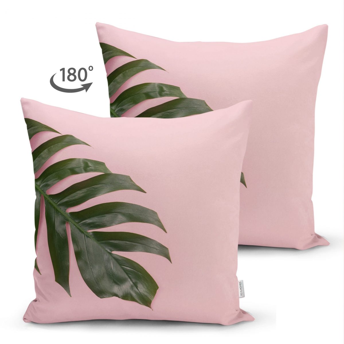 Çift Taraflı Pembe Zeminde Yaprak Modern Tasarımlı Dekoratif Süet Yastık Kırlent Kılıfı Realhomes