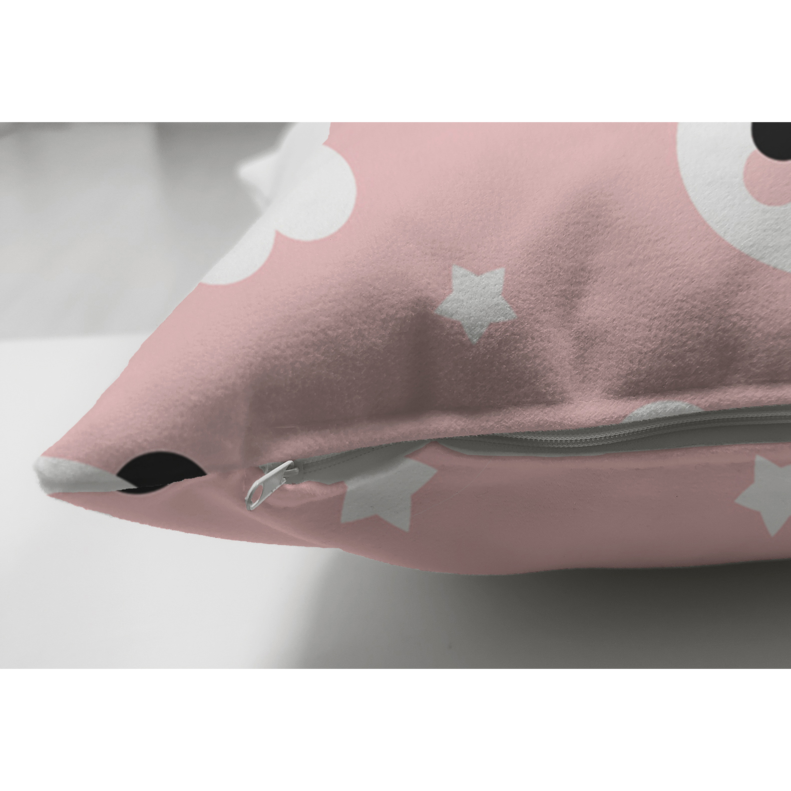 Çift Taraflı Pembe Zeminli Panda Resimli Dijital Baskılı Süet Kırlent Kılıfı Realhomes
