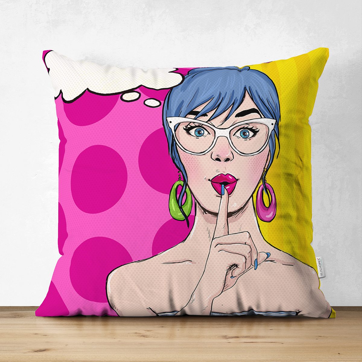 Çift Taraflı Pop Art Dijital Baskılı Dekoratif Süet Yastık Kırlent Kılıfı