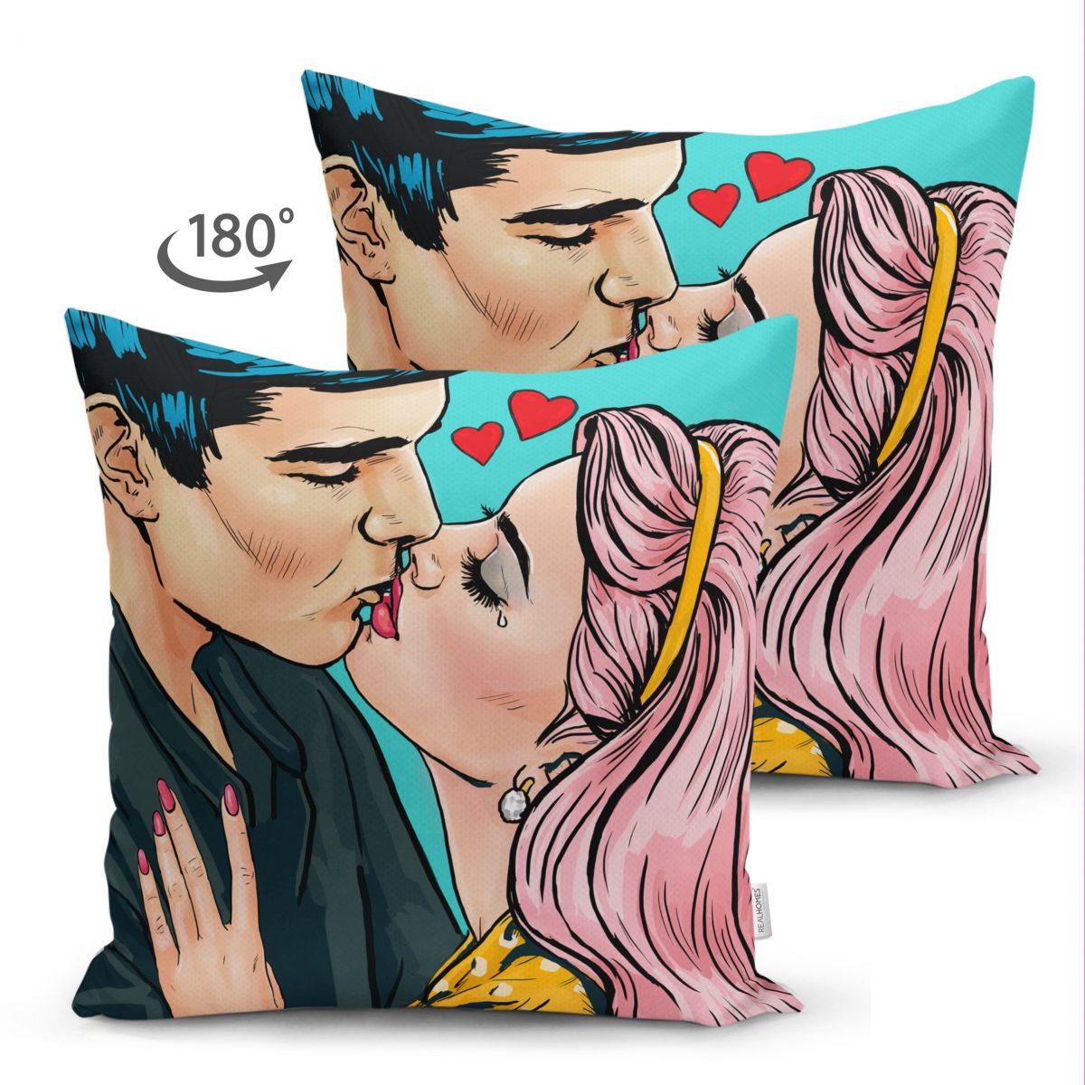 Çift Taraflı Pop Art Resimli Dijital Baskılı Dekoratif Süet Yastık Kırlent Kılıfı Realhomes