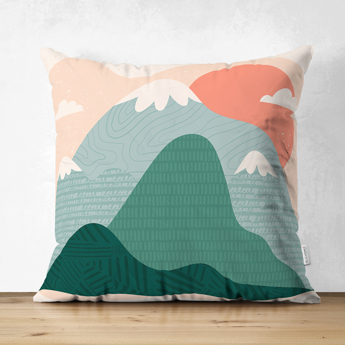 Çift Taraflı Renkli Dağ Motifli Dijital Baskılı Modern Süet Yastık Kırlent Kılıfı Realhomes