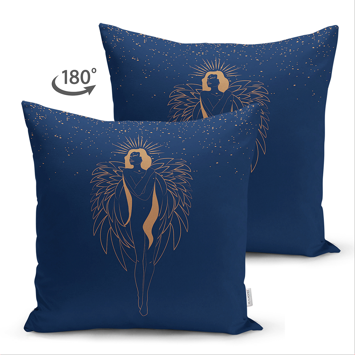 Çift Taraflı Renkli Zemin Üzerinde Bayan Silüeti Dijital Baskılı Modern Süet Yastık Kırlent Kılıfı Realhomes