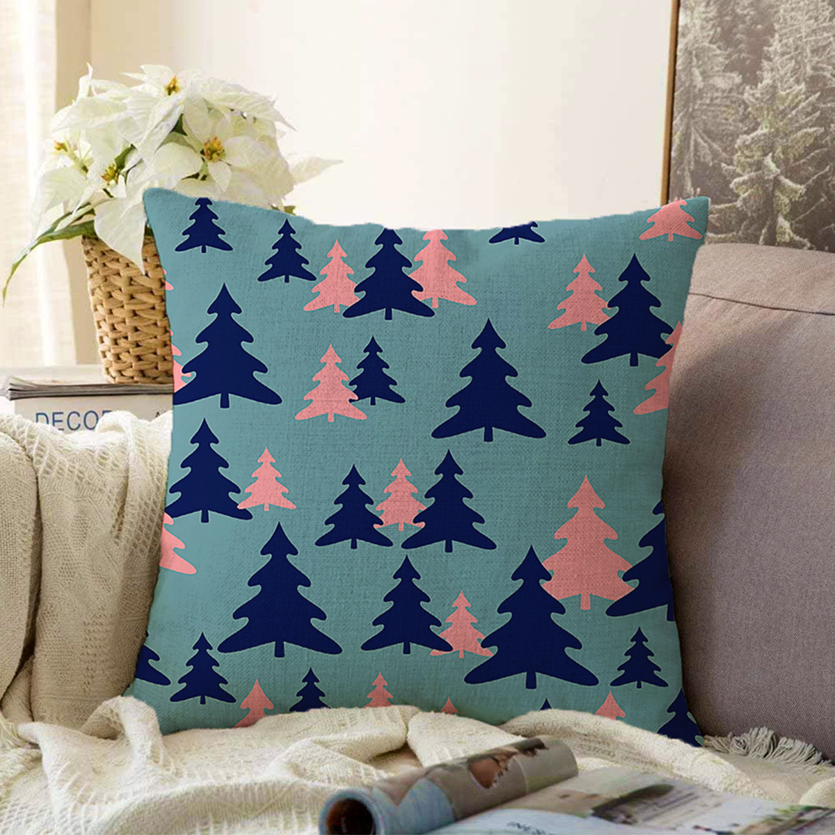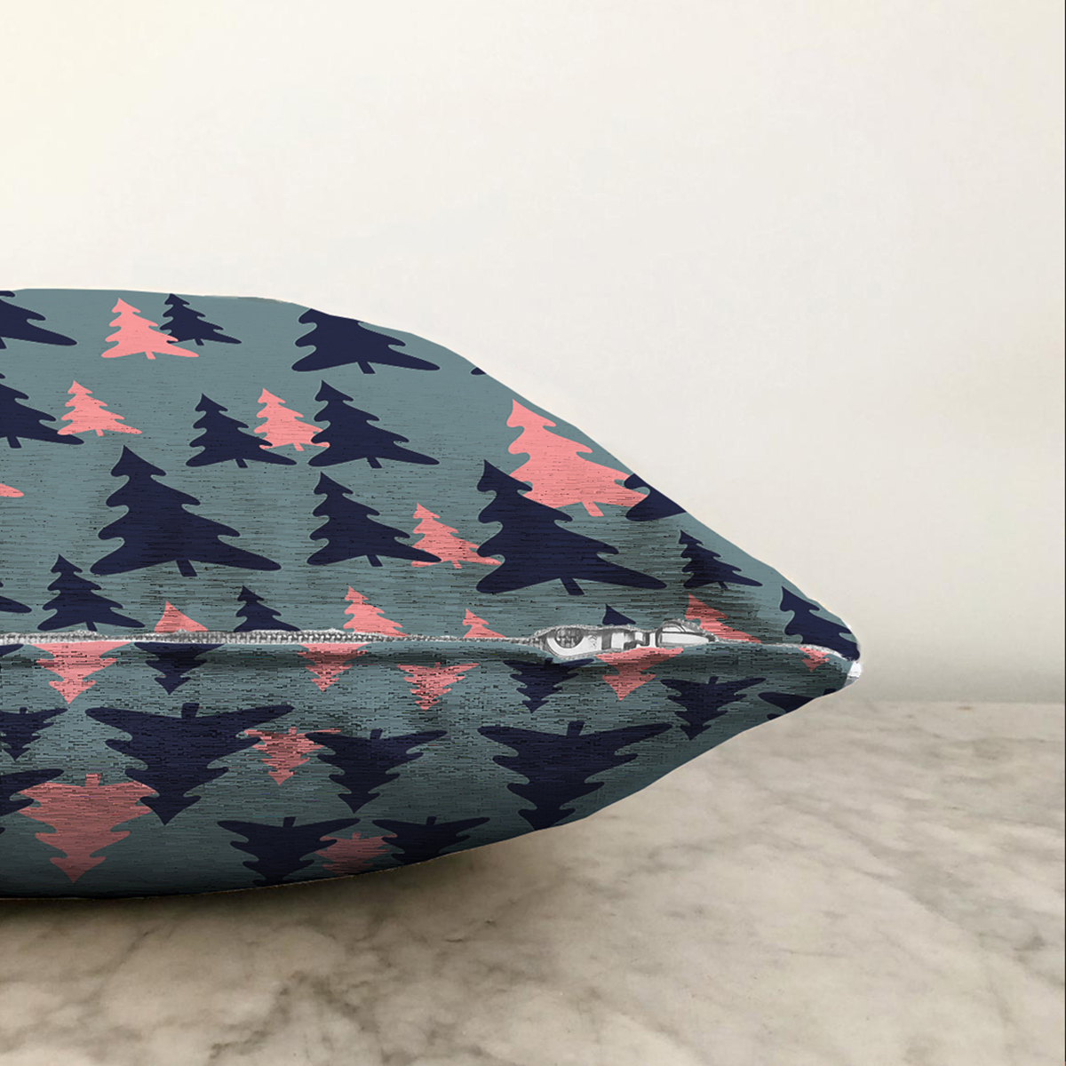 Renkli Zemin Üzerinde Pastel Renkli Siyah Çamağacı Desenli Raşel Kadife Yastık Kırlent Kılıfı