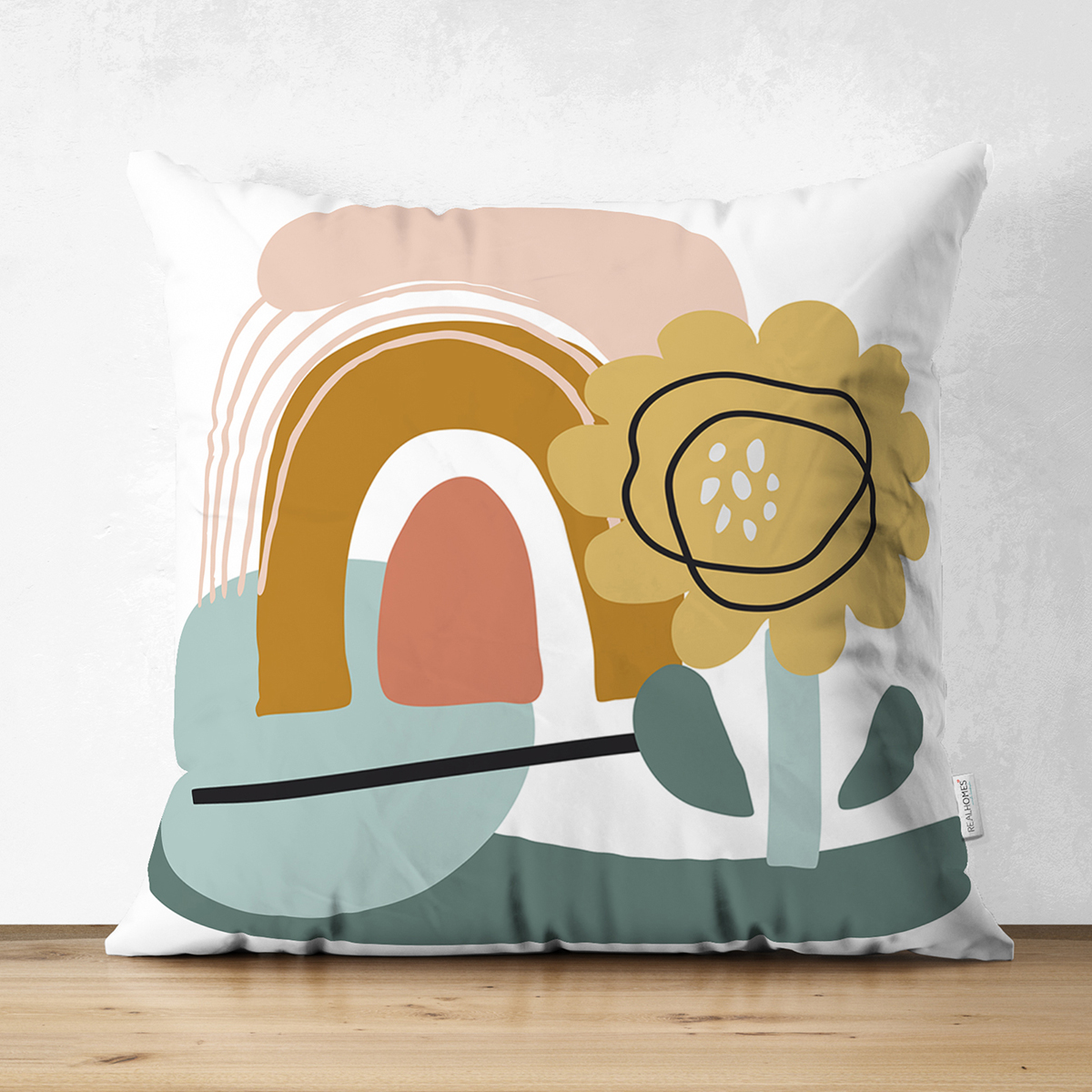 Çift Taraflı Sanatsal Motifli Çiçek Detaylı Dijital Baskılı Modern Süet Yastık Kırlent Kılıfı