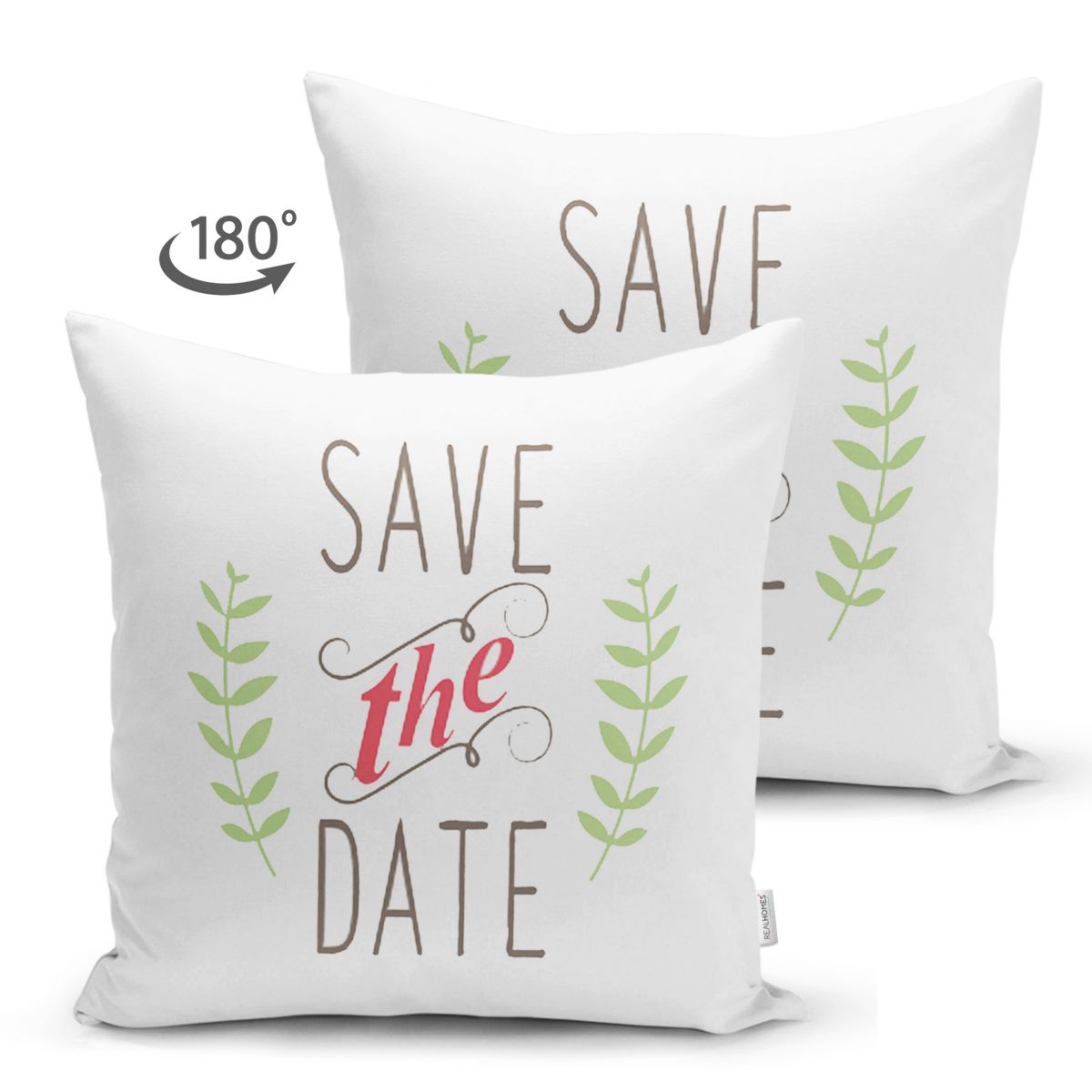 Çift Taraflı Save The Date Başaklı Dijital Baskılı Süet Kırlent Kılıfı