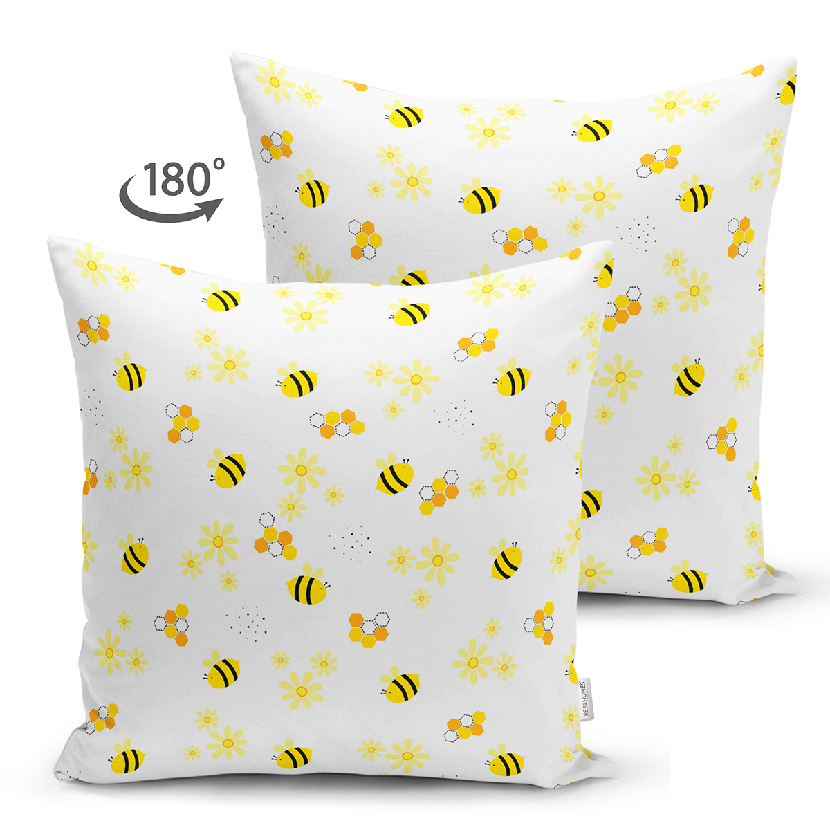 Çift Taraflı Sevimli Arı Desenli Dijital Baskılı Özel Tasarım Modern Süet Yastık Kırlent Kılıfı