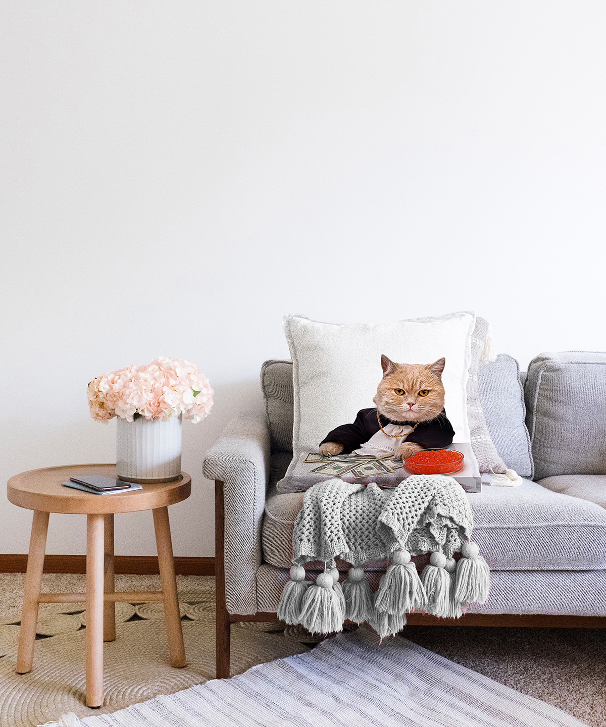 Sevimli Kedi Desenli Dijital Baskılı Modern Raşel Kadife Yastık Kırlent Kılıfı