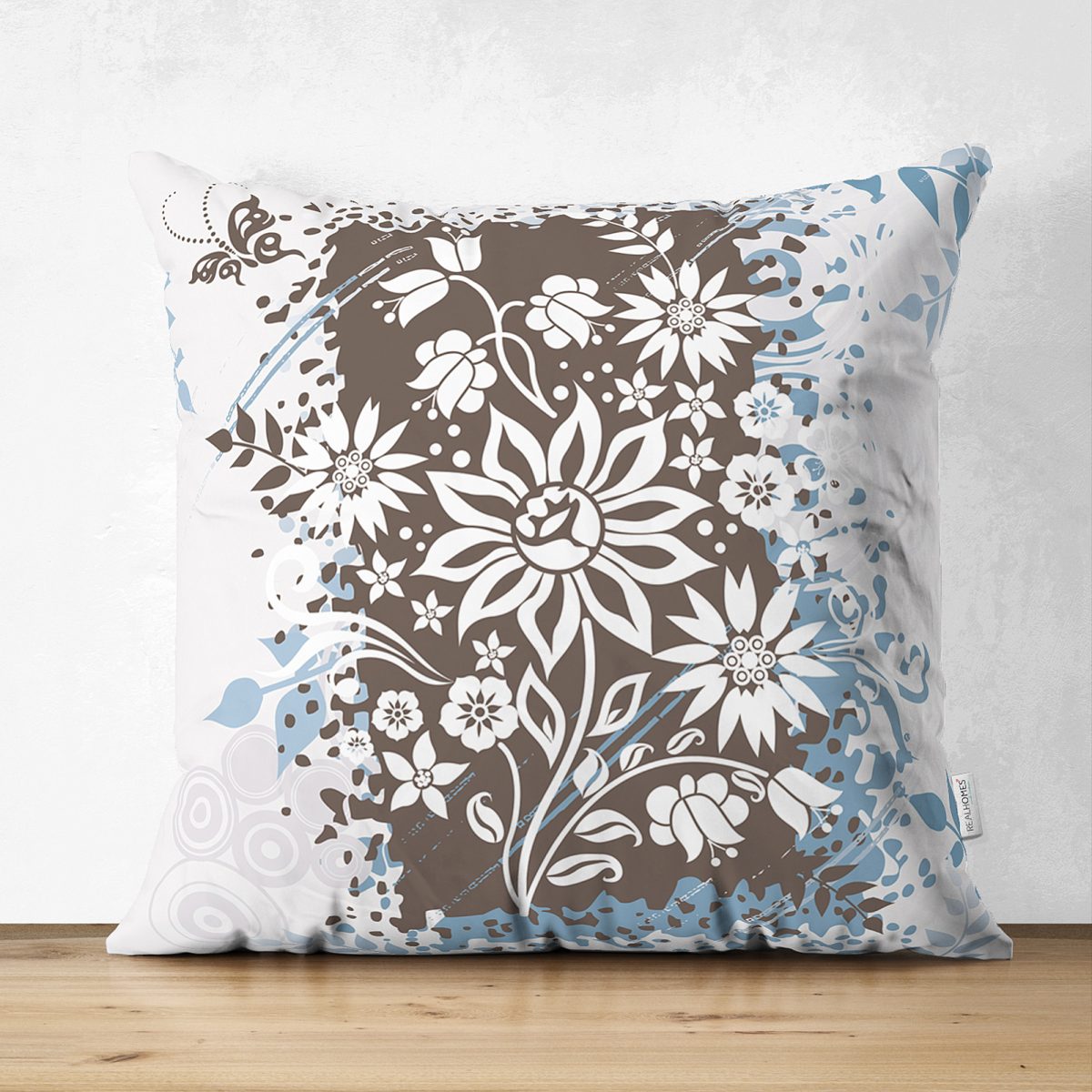 Çift Taraflı Şık Çiçek Çizimli İllüstrasyon Dijital Baskılı Dekoratif Süet Yastık Kırlent Kılıfı
