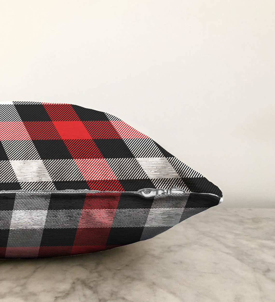 Siyah Kırmızı Beyaz Ekose Desenli Dekoratif Raşel Kadife Yastık Kırlent Kılıfı