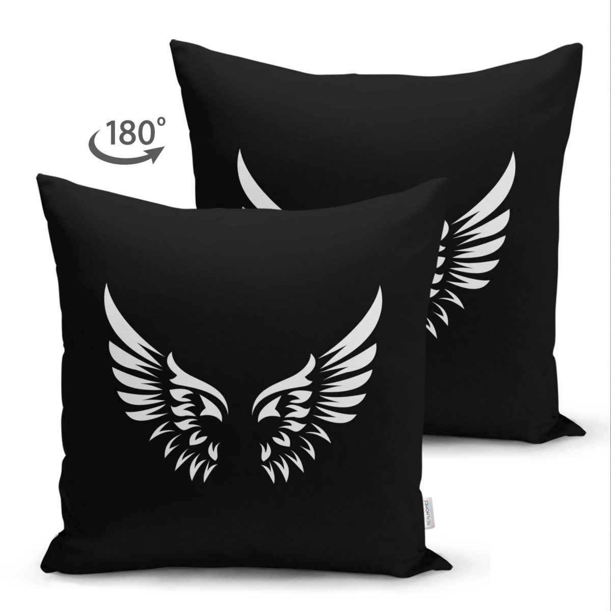 Çift Taraflı Siyah Zemin İçinde Görünen Beyaz Kanatlar Dekoratif Süet Kırlent Kılıfı