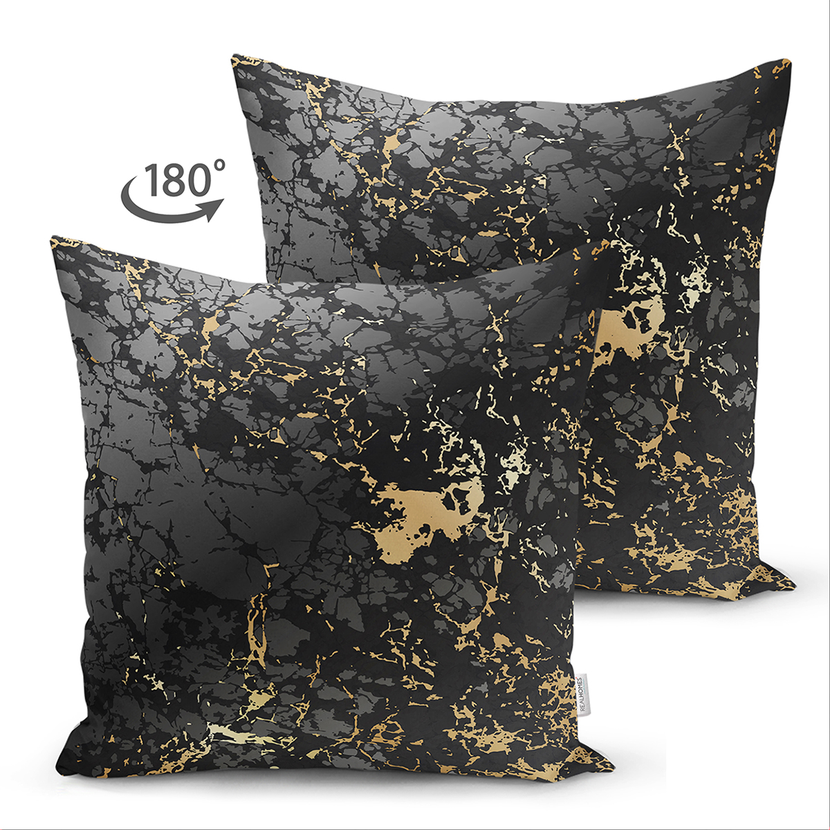 Çift Taraflı Siyah Zeminde Gold Renkli Çizim Desenli Dijital Baskılı Modern Süet Yastık Kılıfı Realhomes