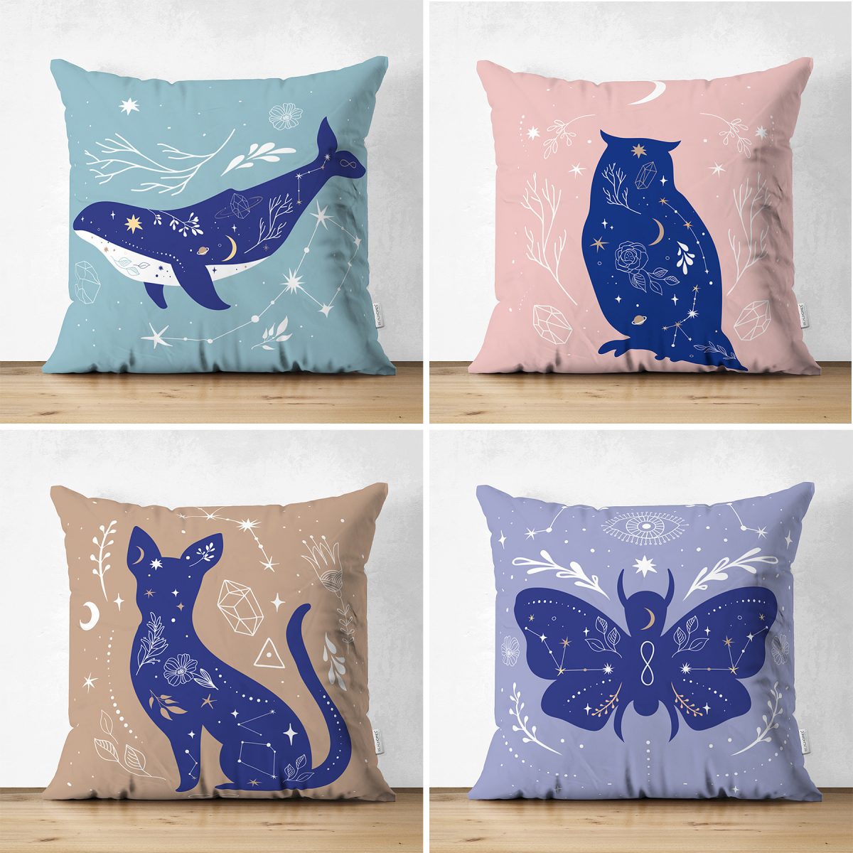 Çift Taraflı Soyut Sevimli Hayvan Baskılı 4'Lü Süet Kırlent Kılıf Seti Realhomes