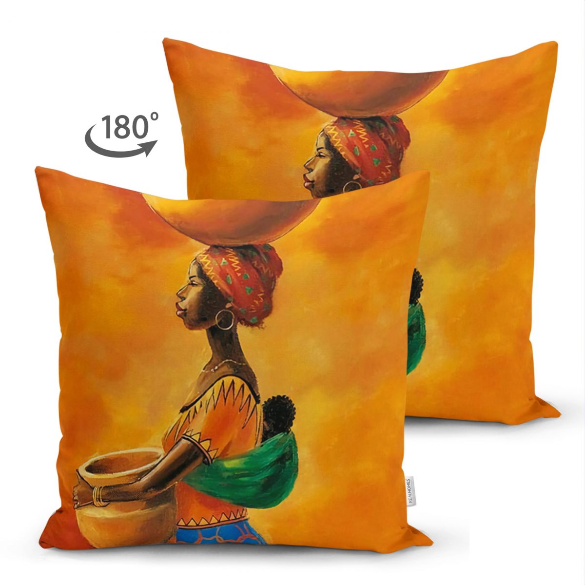 Çift Taraflı Turuncu Afrikan Women Tasarımlı Dijital Baskılı Süet Yastık Kırlent Kılıfı