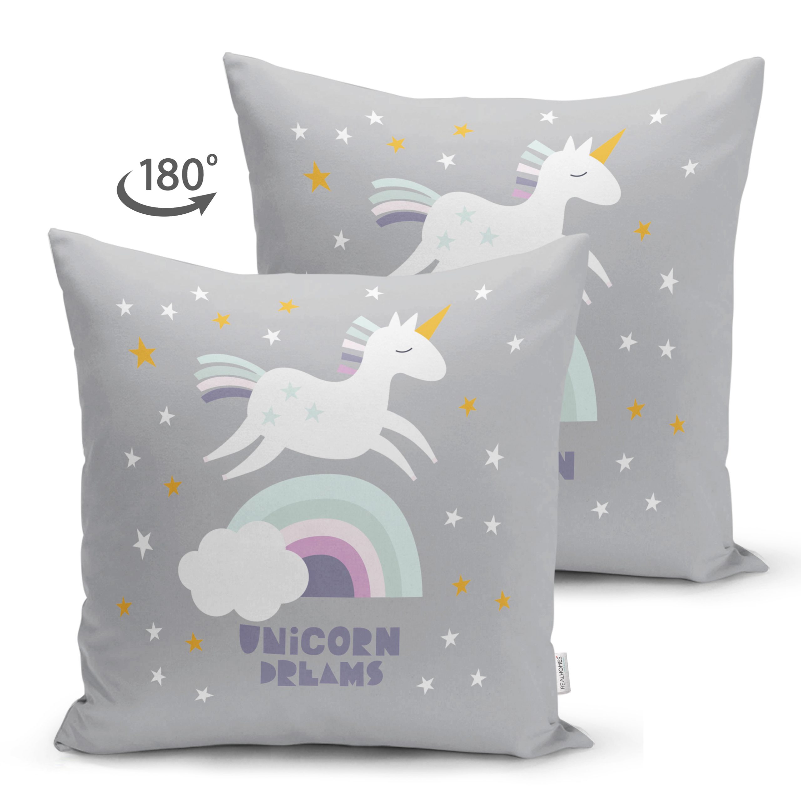 Çift Taraflı Unicorn Özel Tasarımlı At Motifli Çocuk Odası Süet Yastık Kırlent Kılıfı