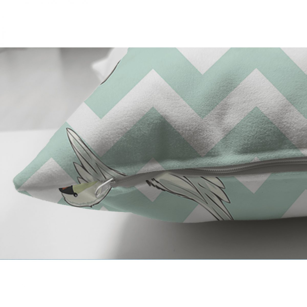 Çift Taraflı Zigzag Zeminli Kuğu Desenli Dijital Baskılı Modern Süet Yastık Kılıfı Realhomes