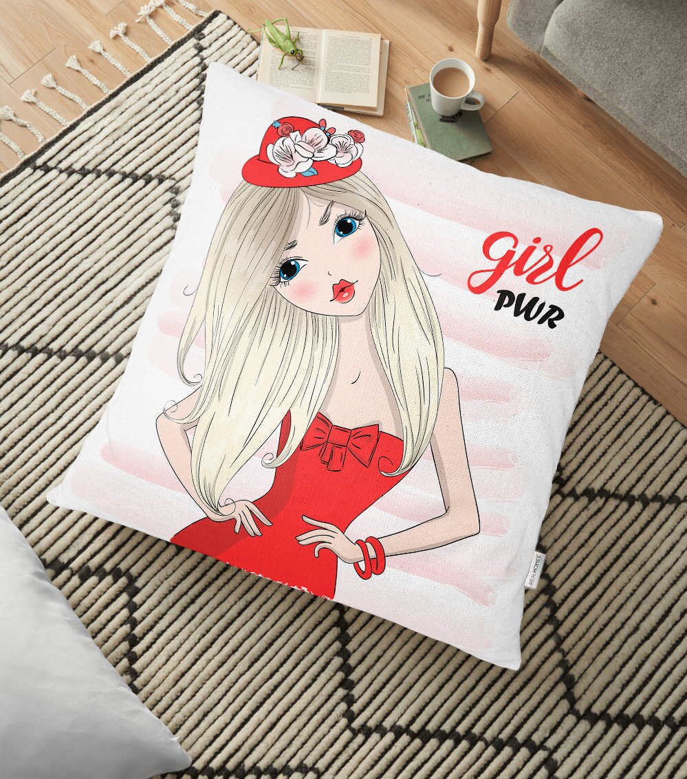 Çizgili Grl Power Desenli Dijital Baskılı Dekoratif Yer Minderi – 70 x 70 cm