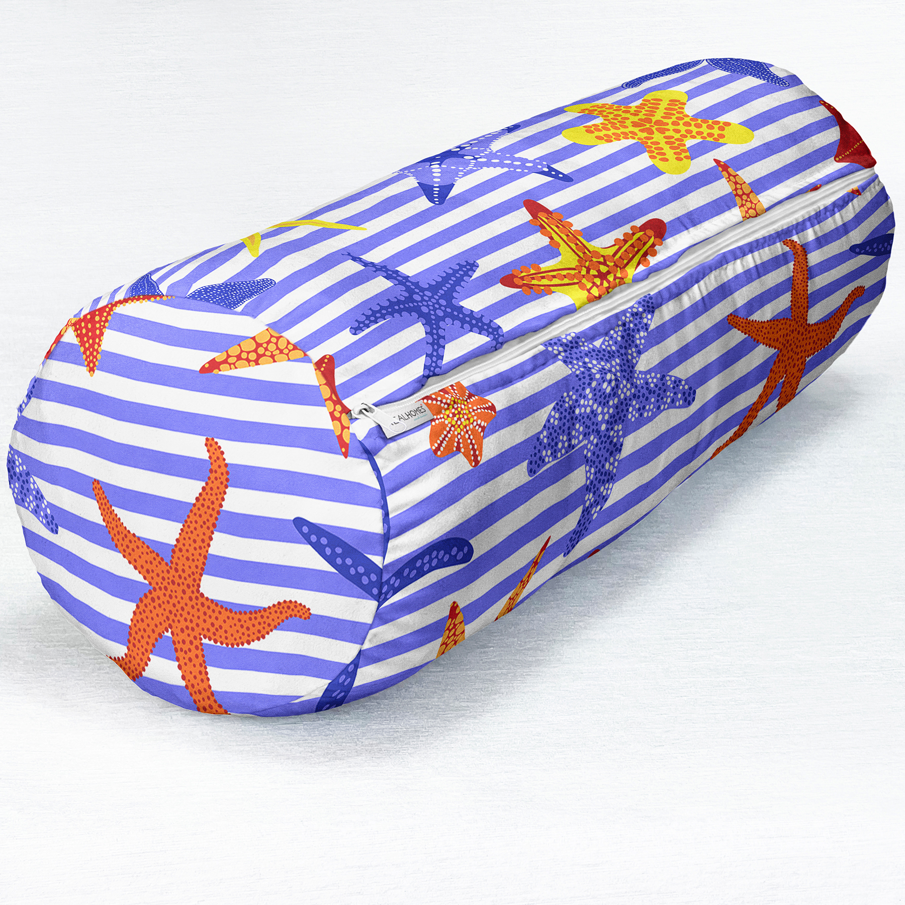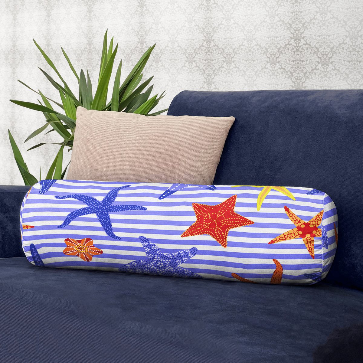 Çizgili Mavi Deniz Yıldızı Özel Tasarım Dijital Baskılı Modern İç Dolgulu Fermuarlı Çok Amaçlı Silindir Yastık Kırlent