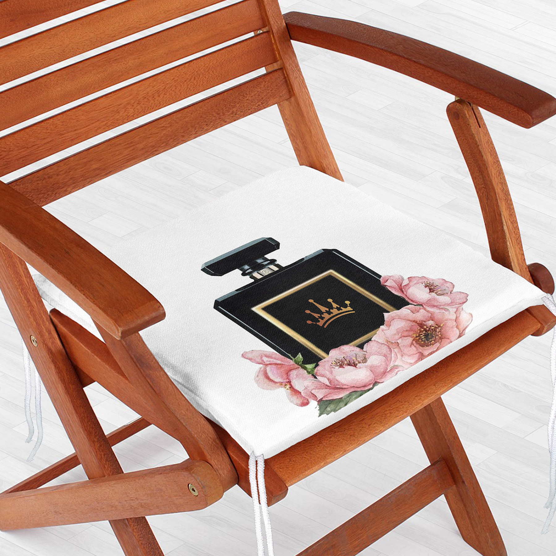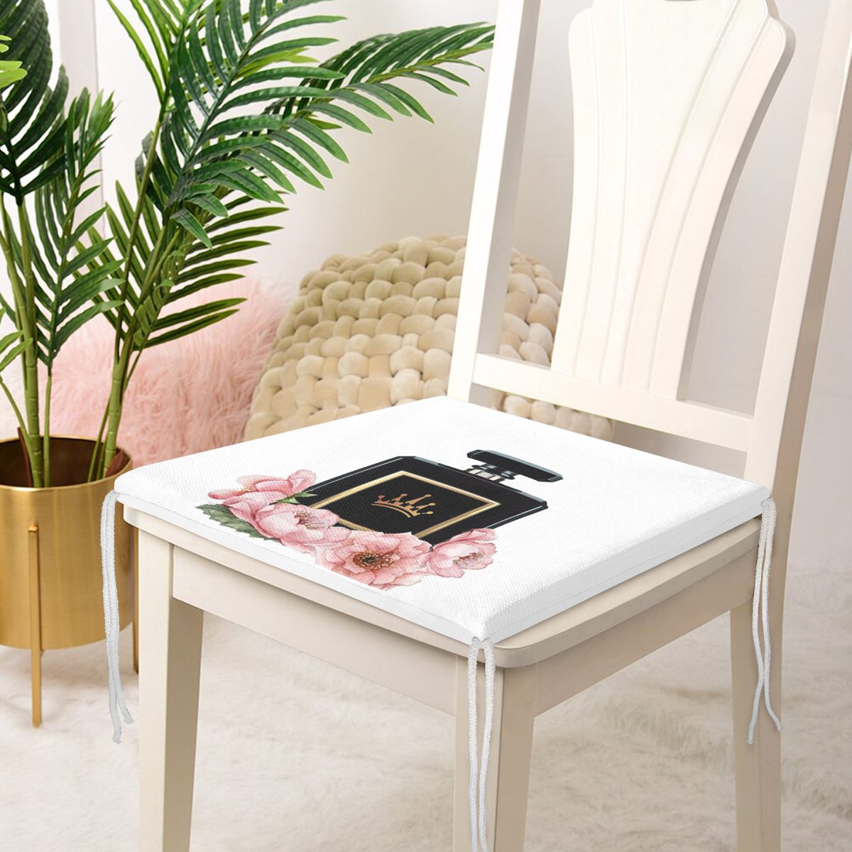 Coco Parfüm Tasarımlı Dijital Baskılı 3D Fermuarlı Sandalye Minderi