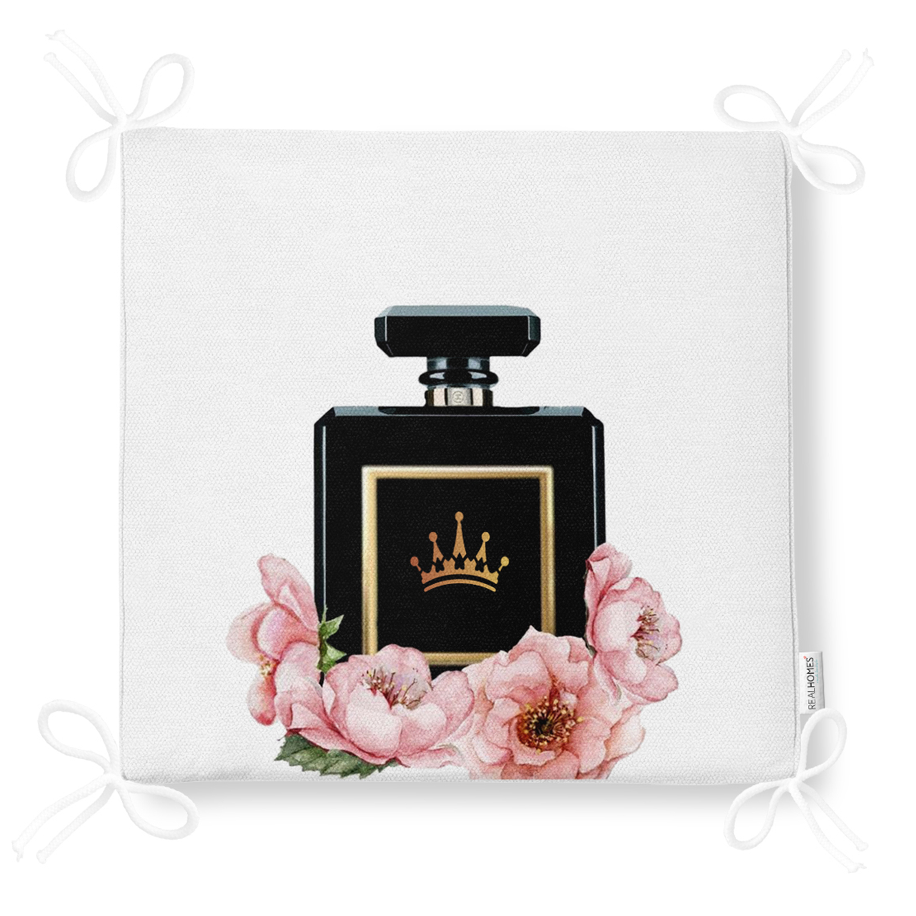 Coco Parfüm Tasarımlı Dijital Baskılı 3D Fermuarlı Sandalye Minderi Realhomes