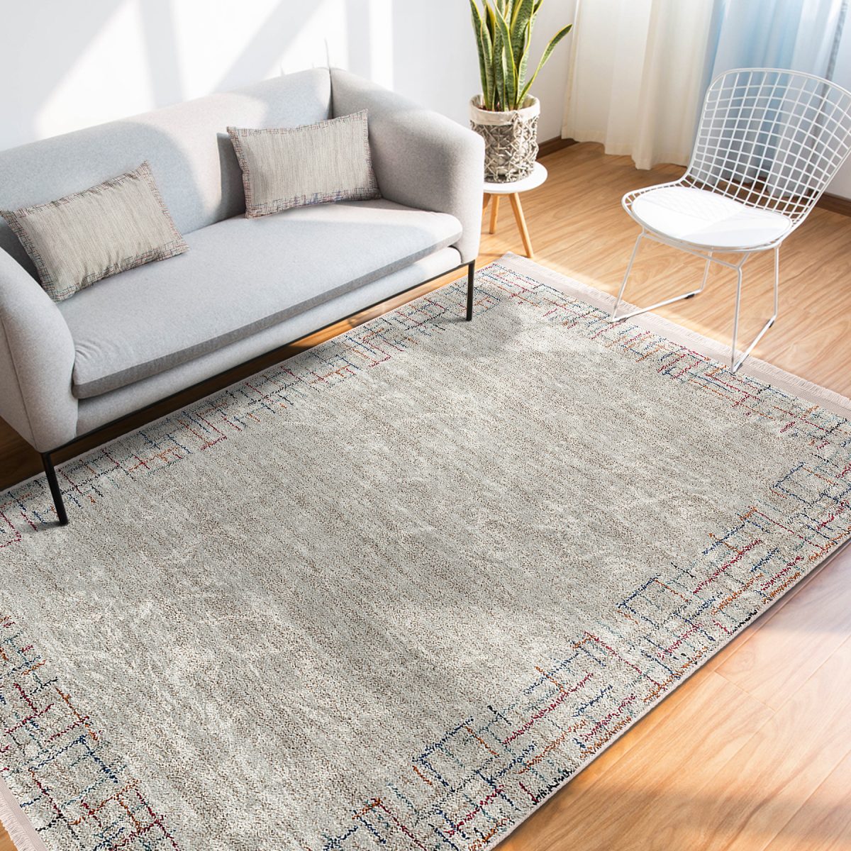 Pastel Zeminde Modern Motifli Geometrik Desenli Geometrik Sade & Şık Salon & Oturma Odası Yatak Odası Dijital Baskılı Makinede Yıkanabilir Kaymaz Taban Saçaklı Halı