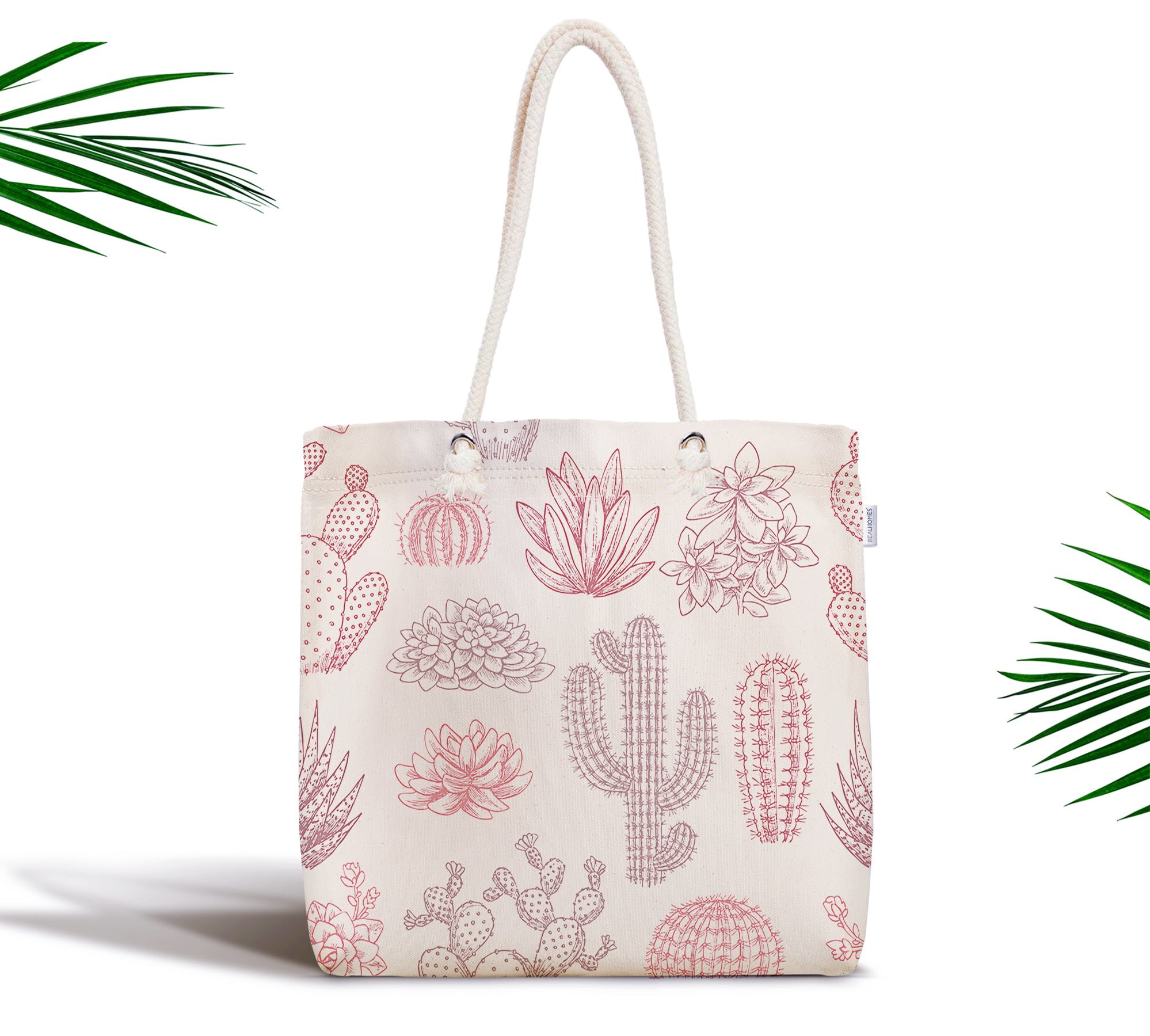 Çöl Bitkisi Desenli Dijital Baskılı Fermuarlı Kumaş Çanta