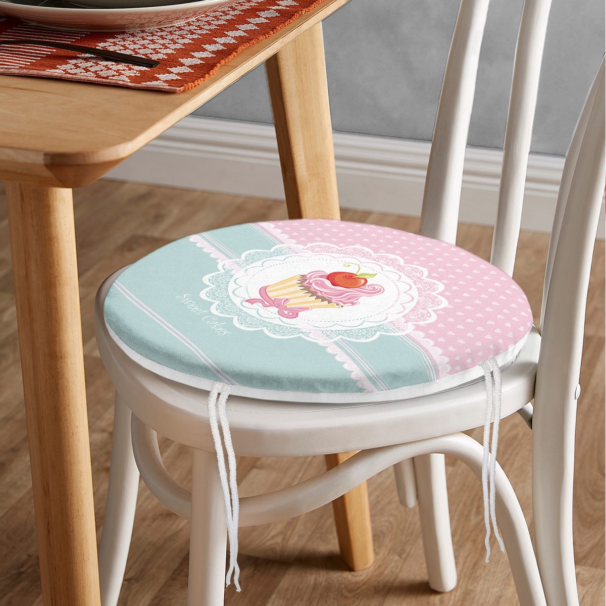Cup Cake Dijital Baskılı Yuvarlak Fermuarlı Sandalye Minderi Realhomes